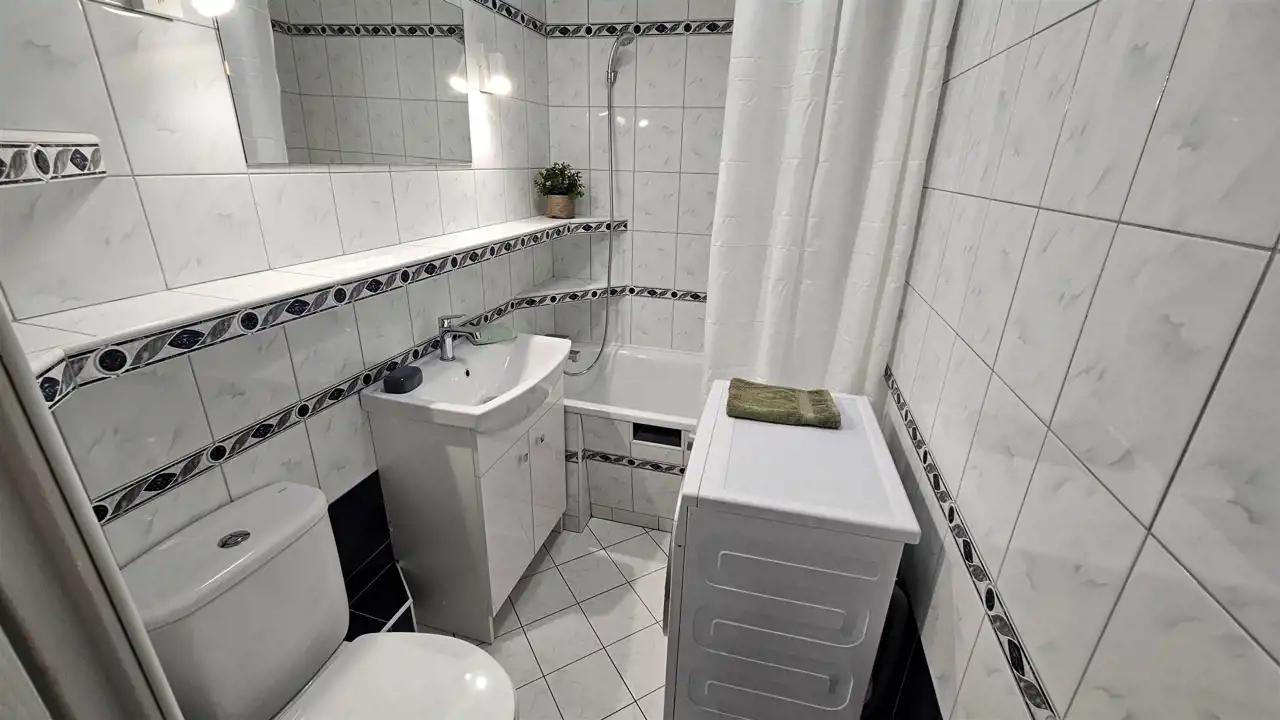 ŁAZIENKA z TOALETĄ: wyposażona w pralkę.