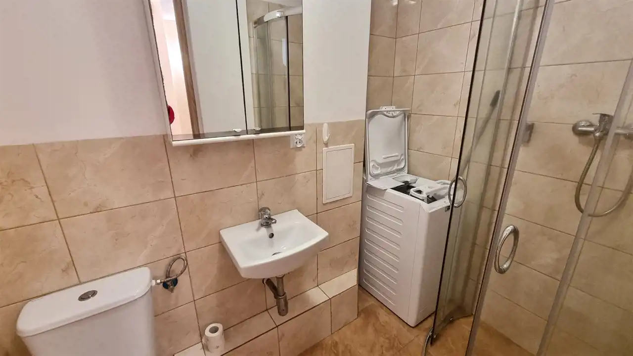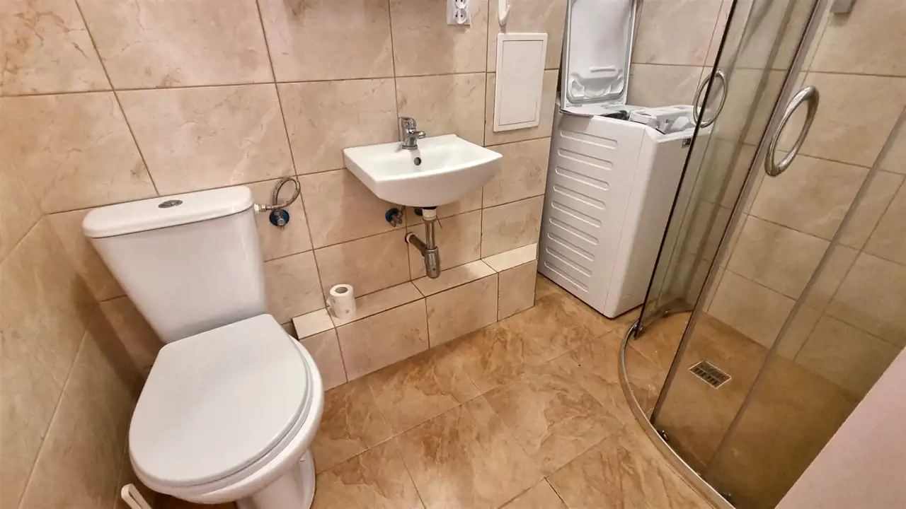 - ŁAZIENKA+ WC: ok. 3,5 m kw, nowoczesna glazura i terakota, kabina prysznicowa, umywalka, sedes, pralka