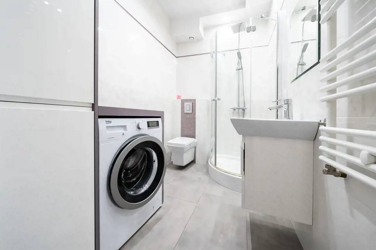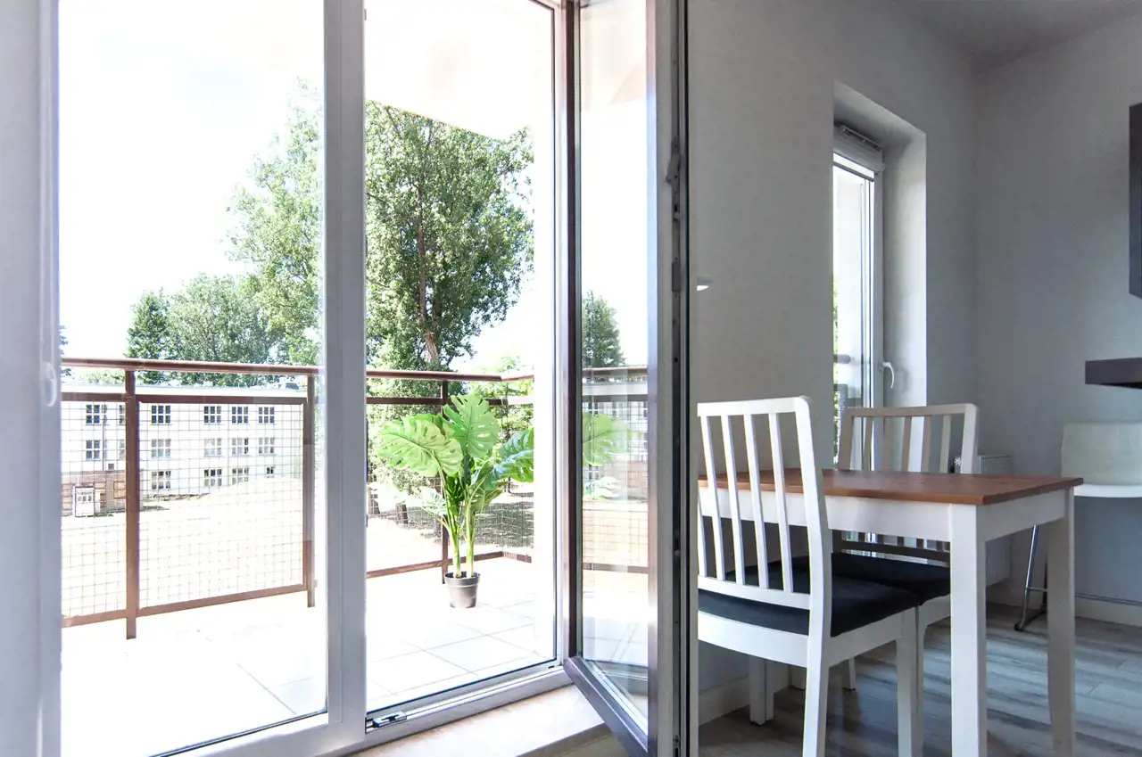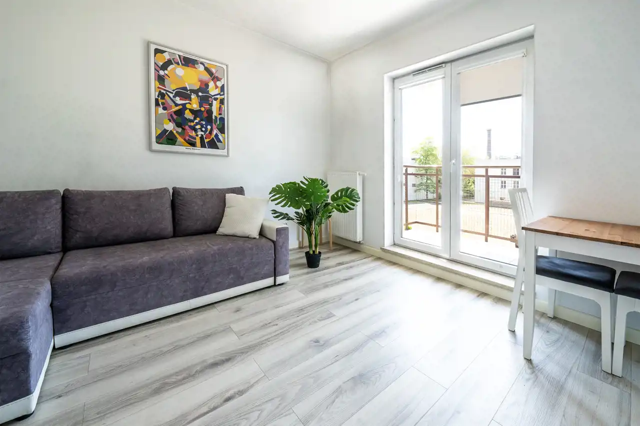 Nowe mieszkanie na pierwszym piętrze w bloku z windą. Powierzchnia 27 m2 obejmuje przestronny, jasny, dobrze doświetlony pokój z wyjściem na duży balkon oraz z urządzonym nowoczesnym aneksem kuchennym, który jest wyposażony między innymi w lodówkę, płytę indukcyjną i zmywarkę. Łazienka z kabiną prysznicową, pralką , umywalką i wc. Dodatkowe wyposażenie: (meble - kanapa, lodówka, pralka, zmywarka na gwarancji). Do mieszkania przynależy komórka lokatorska oraz dodatkowo płatne miejsce postojowe w garażu podziemnym. W korytarzu drzwi antywłamaniowe, znajduje się tam również videofon. Całodobowa ochrona i monitoring osiedla.