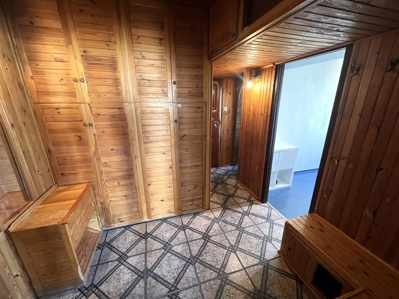 - PRZEDPOKÓJ: 6,40 m², szafki na buty z zabudowie z boazerii, wieszak na płaszcze, lustro,