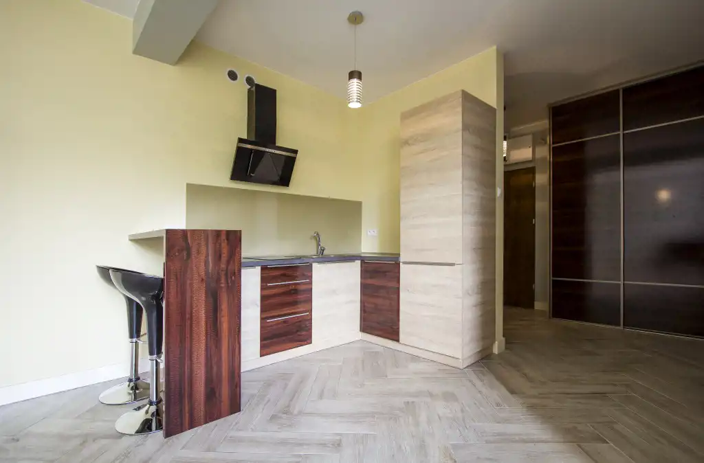 - aneks kuchenny wyposażony w płytę ceramiczną, okap i lodówkę z zamrażarką;