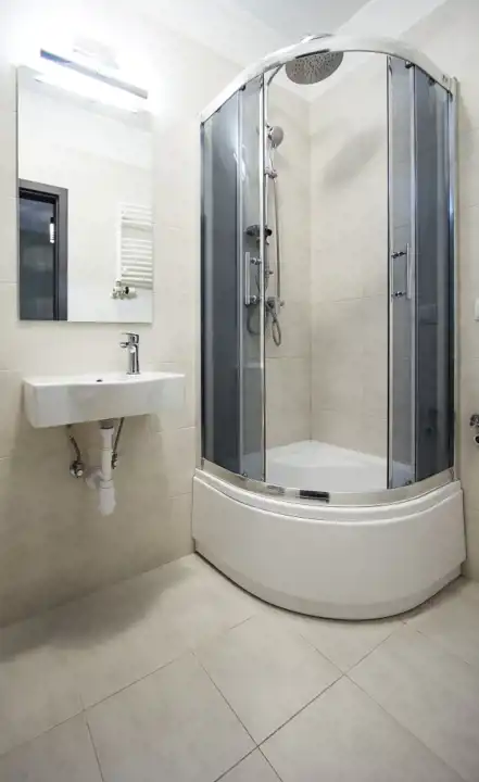 - nowoczesną łazienkę z W.C. wyposażoną w kabinę prysznicową;