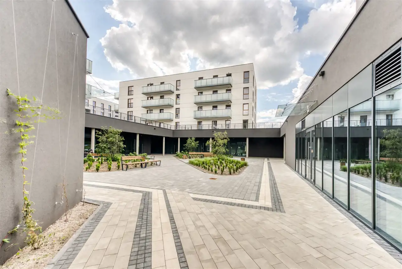 Osiedle jest doskonale połączone z centrum miasta, zarówno dzięki dostępności komunikacji miejskiej, jak i szybkością dojazdu autem (10 min).