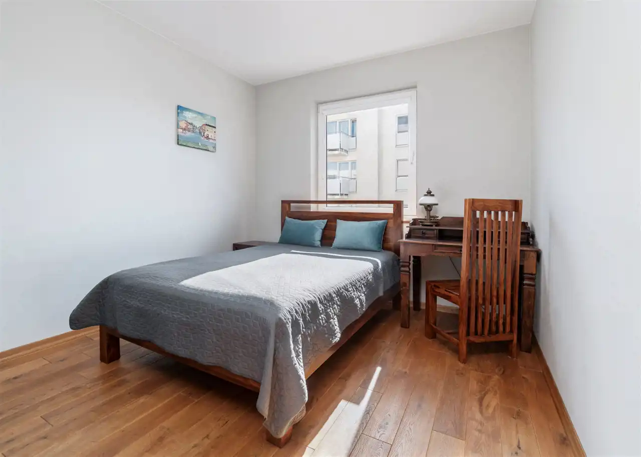 - przestronną sypialnię z dużym łóżkiem i pojemną szafą;