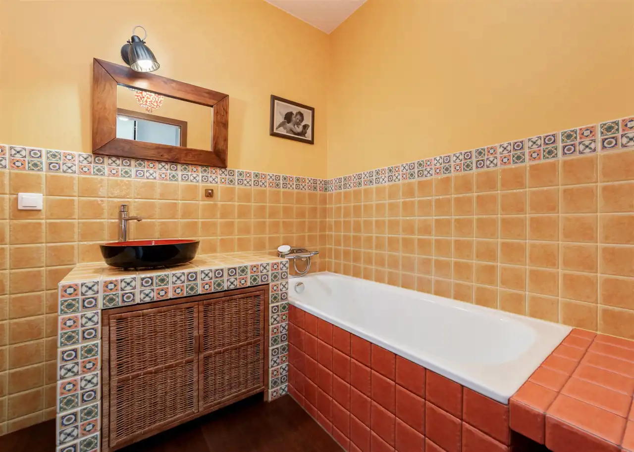- łazienkę z WC wyposażoną w wannę oraz pralkę;