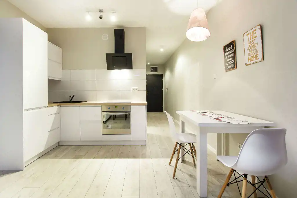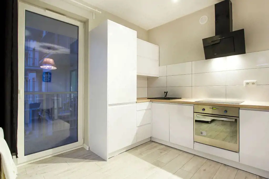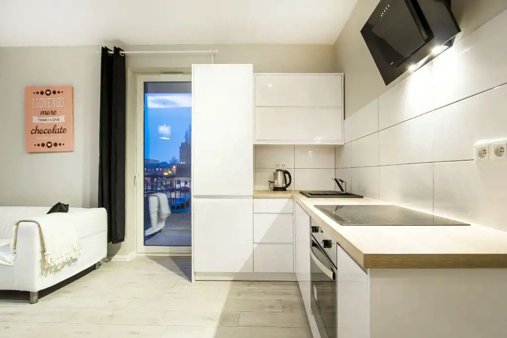 - aneks kuchenny wyposażony w płytę indukcyjną, piekarnik, okap, lodówkę z zamrażarką oraz zmywarkę;