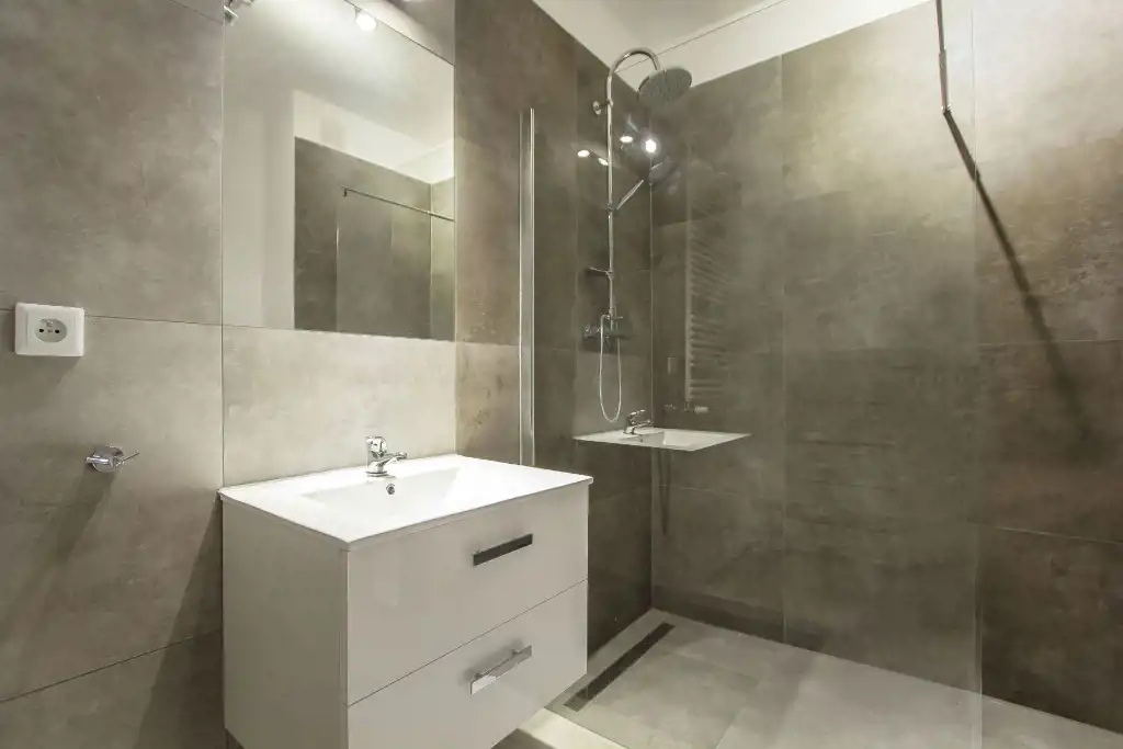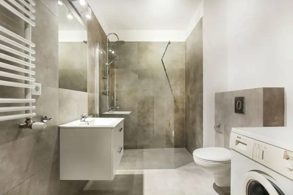- łazienkę z WC wyposażoną w prysznic oraz pralkę;