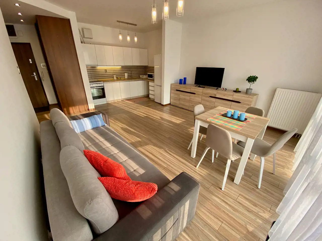 Opłata dla właściciel to 2000 zł plus opłata za garaż 250 zł plus koszty eksploatacji około 1000 zł (w tym opłata dla wspólnoty 806,68 zł przy dwóch osobach i zużyciu 9,29 m3 wody zimnej i 3,52 m3 wody ciepłej oraz rachunki za prąd około 200 zł - dwie osoby pracujące zdalnie w mieszkaniu) plus koszt Internetu i TV, jeżeli są potrzebne. Kaucja 3250 zł.