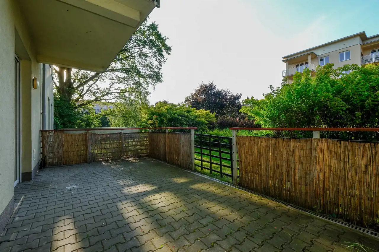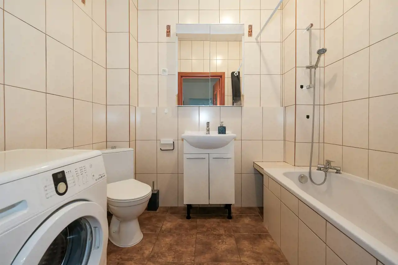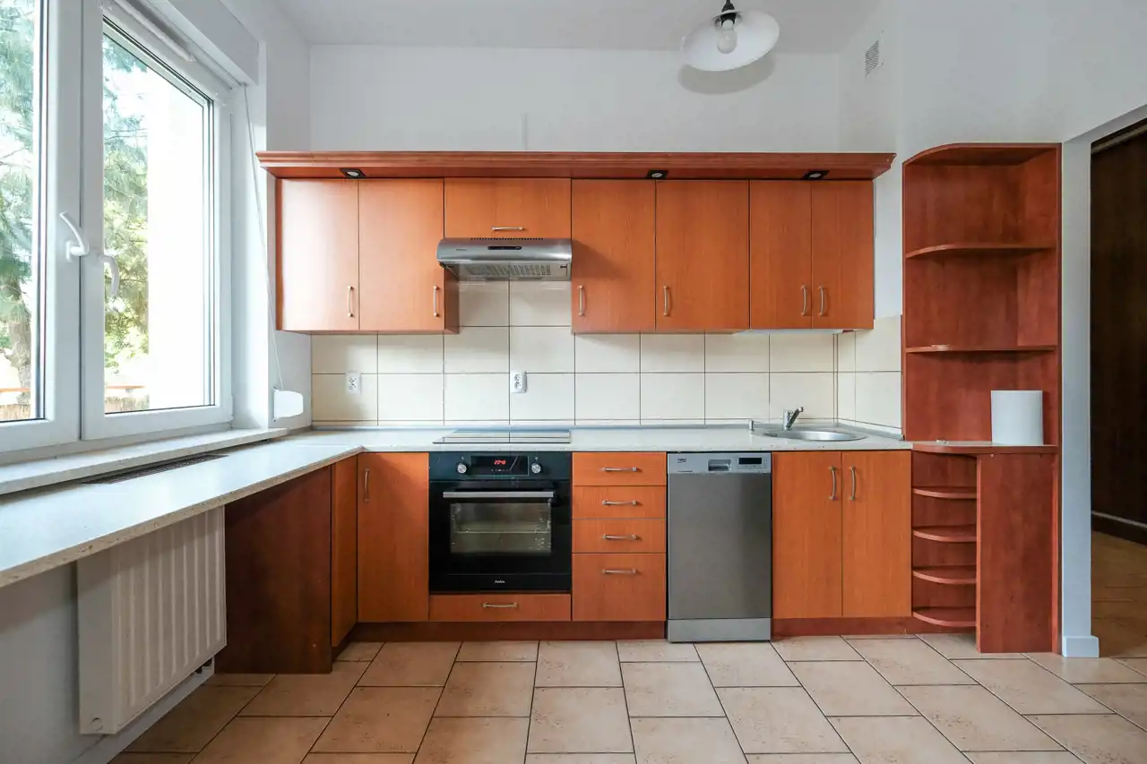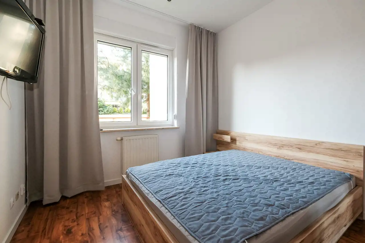 Mieszkanie w pełni umeblowane i wyposażone. W części wypoczynkowo-kuchennej zabudowa kuchenna (na wyposażeniu min. piekarnik, płyta indukcyjna, lodówka z zamrażarką, zmywarka) kanapa, szafka RTV oraz wyjście na własny ogródek.