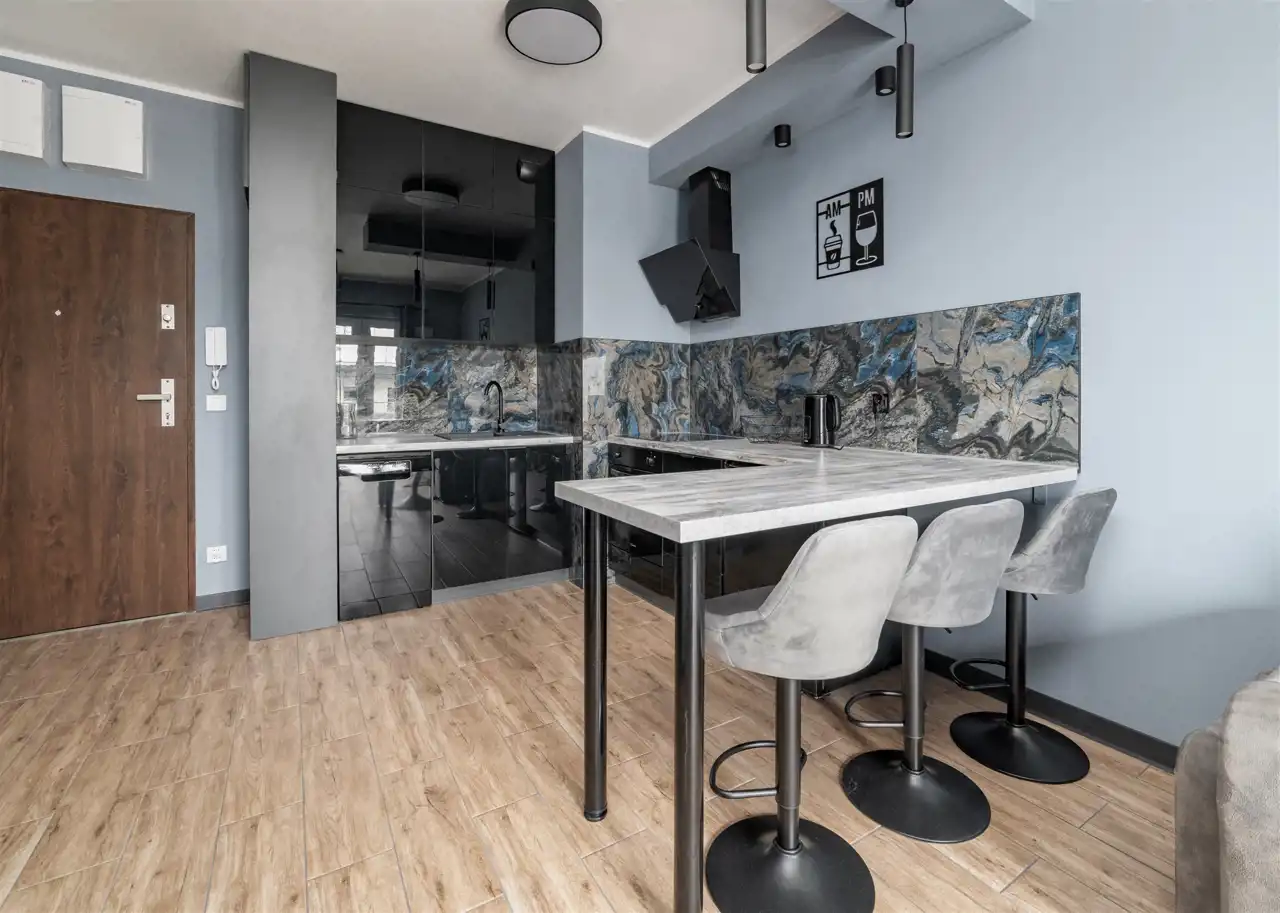 - aneks kuchenny wyposażony w płytę indukcyjną, okap, piekarnik, lodówkę oraz zmywarkę;