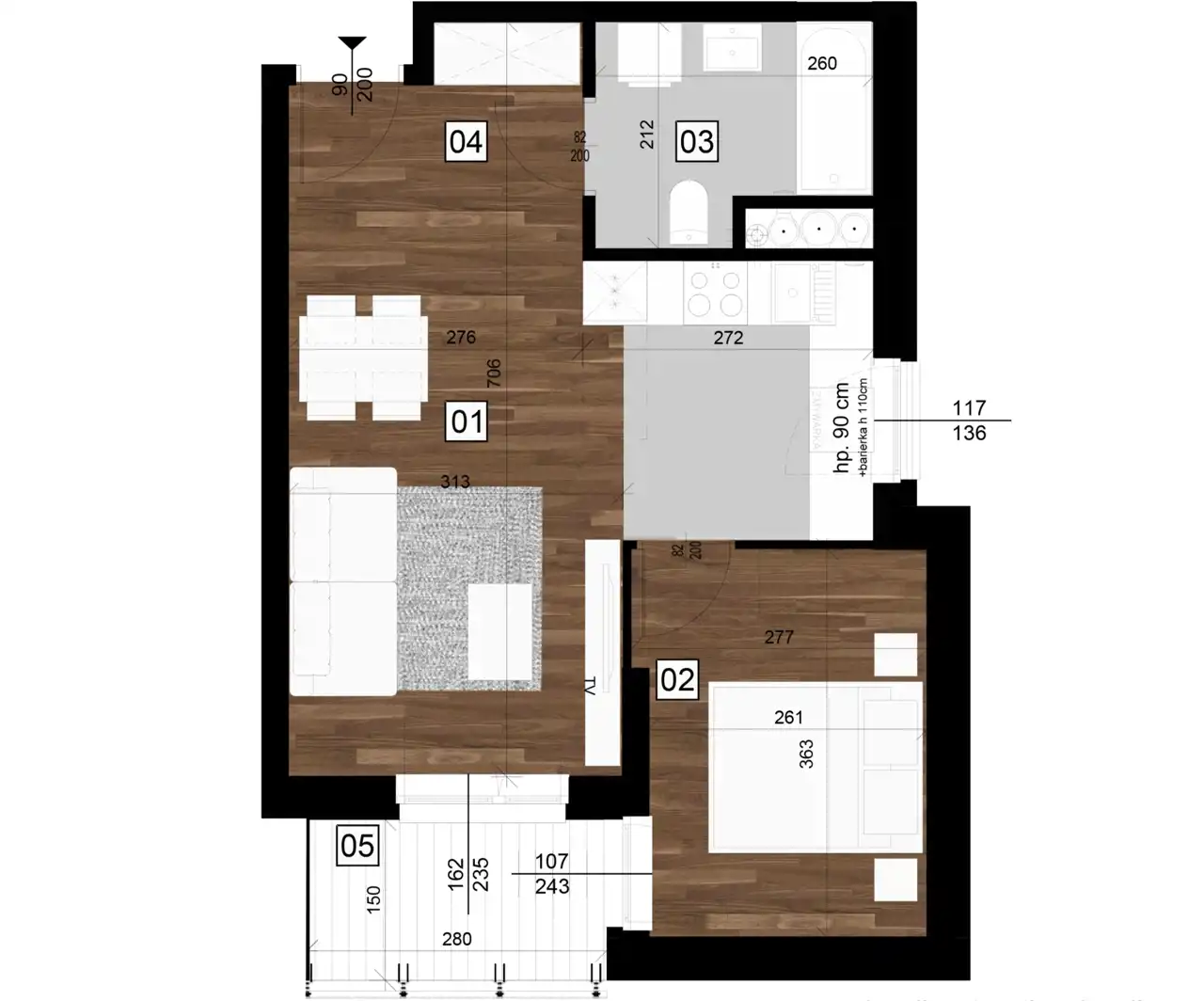 - Charakterystyka mieszkania 40.51 m2, 2 pokoje