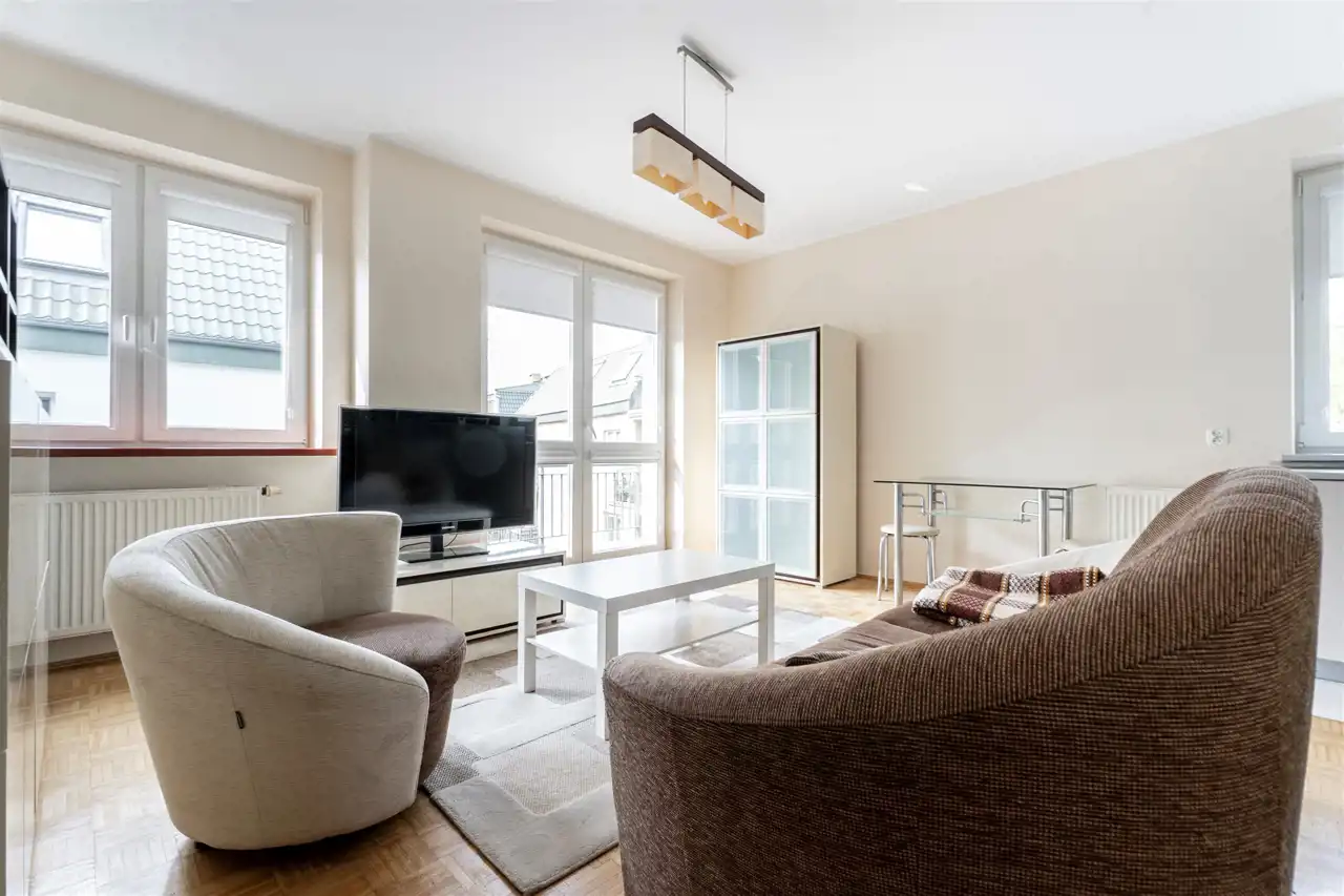 Treść: Szukasz komfortowego i w pełni wyposażonego mieszkania do wynajęcia w Łodzi? Zapraszamy do obejrzenia przytulnego, dwupokojowego mieszkania o powierzchni 48 m², zlokalizowanego na 2. piętrze w spokojnej, bocznej uliczce odchodzącej od ul. Pabianickiej.