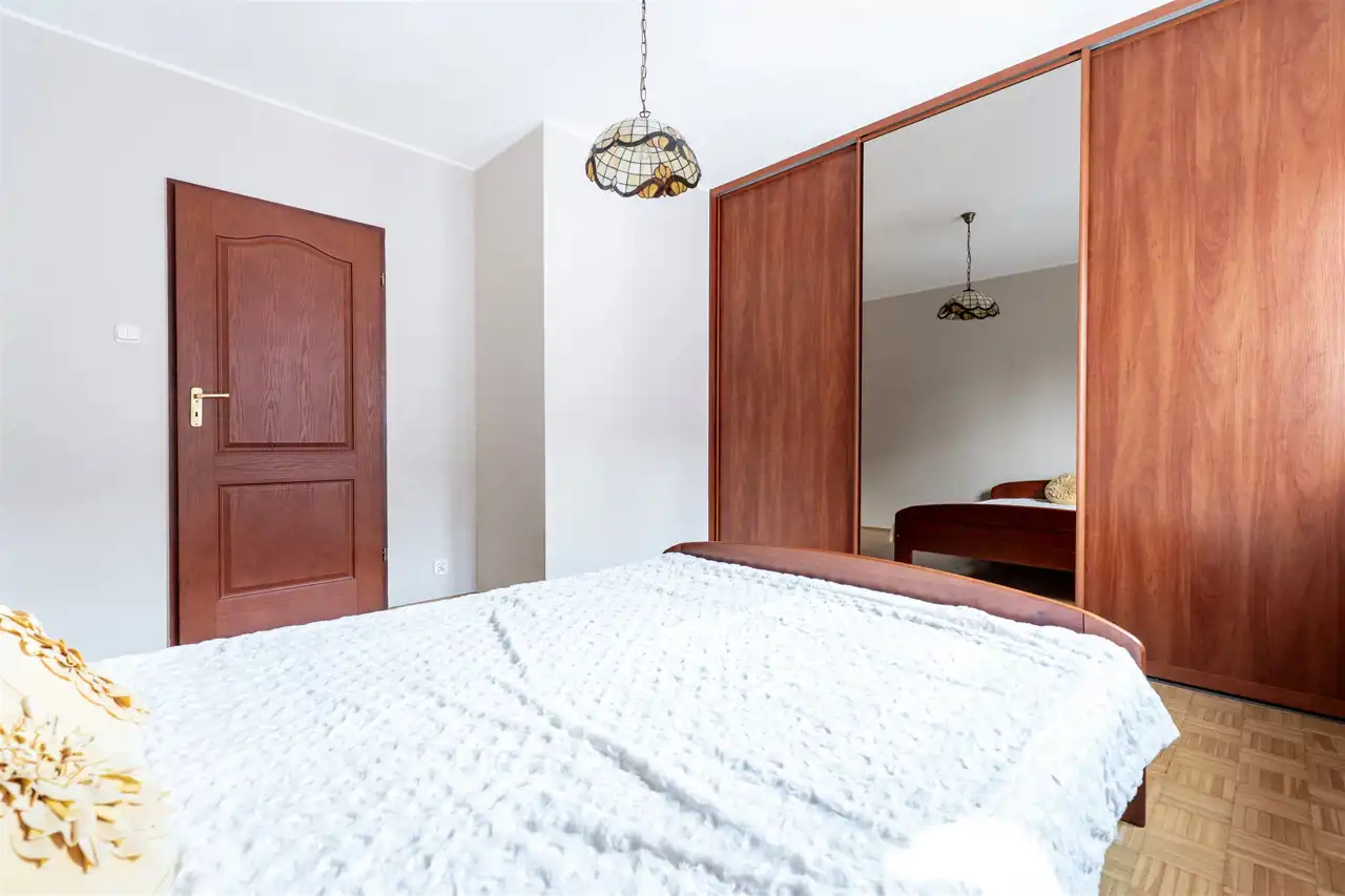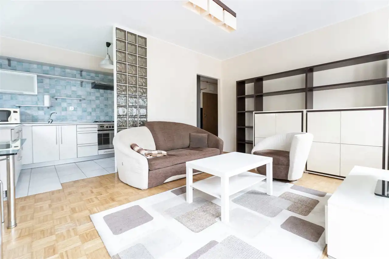 W pełni wyposażone - w salonie znajdziemy komplet wypoczynkowy, szafkę RTV, telewizor, regały oraz stół z krzesłami. Kuchnia wyposażona w lodówkę, piekarnik, płytę grzewczą, zlewozmywak z baterią i pojemne szafki w zabudowie. Możliwość zamontowania zmywarki. Przestronna sypialnia z dużym, małżeńskim łóżkiem i pakowną szafą w zabudowie. Łazienka posiada wannę z funkcją prysznica, umywalkę, toaletę. W przedpokoju dodatkowa szafa.