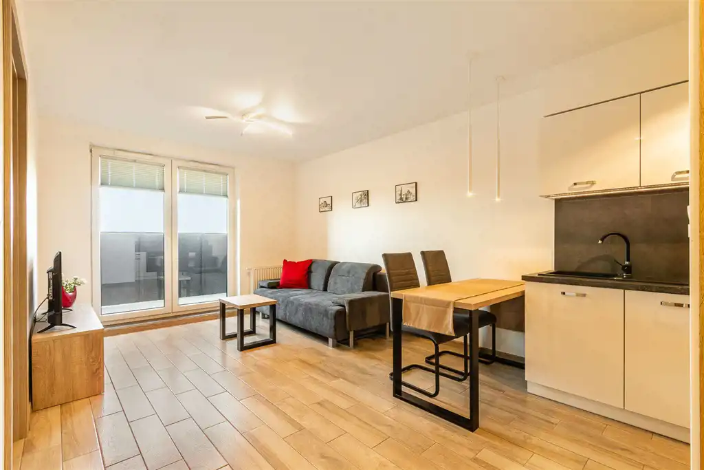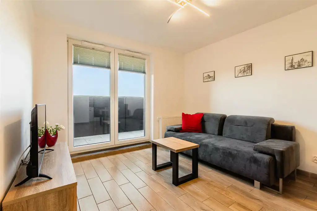 Przedstawiamy nowoczesny, 2 pokojowy apartament o powierzchni 36,10 m2 położony na ósmym piętrze w nowym apartamentowcu przy ul. Sobolowej 4 w Łodzi.