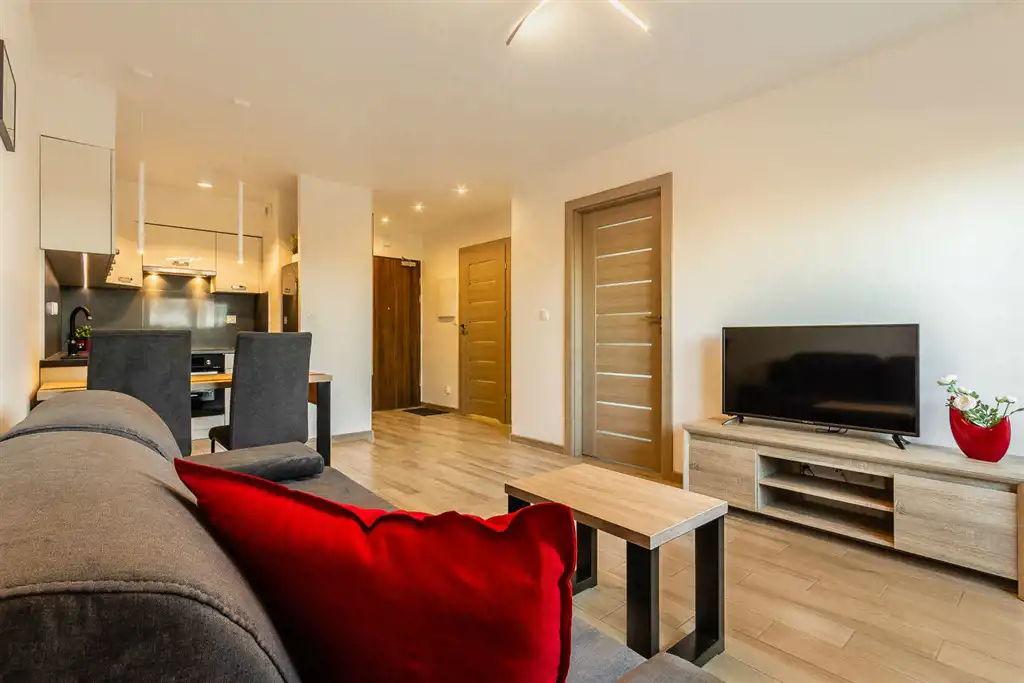 Wysoki standard wykończenia wnętrz, doskonała lokalizacja oraz funkcjonalny układ apartamentu stanowią niewątpliwe atuty oferty.