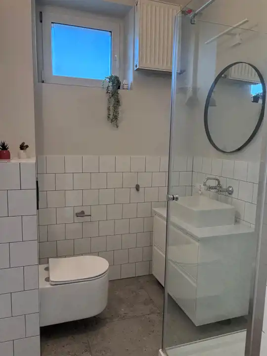Mieszkanie urządzone w jasnych, przyjemnych kolorach. W salonie znajduje się wygodna kanapa z funkcją spania, stolik kawowy, regał oraz mała jadalnia z czterema krzesłami. Aneks kuchenny jest w pełni wyposażony: duża lodówko-zamrażarka, zmywarka, płyta indukcyjna, piekarnik. Sypialnia z nowym, dwuosobowym łóżkiem i materacem, stolikami nocnymi oraz pojemną szafą. Łazienka z prysznicem, toaletą i umywalką z szafkami. Pralka w zabudowie znajduje się w przedpokoju. Całość wykonana z wysokiej jakości materiałów.