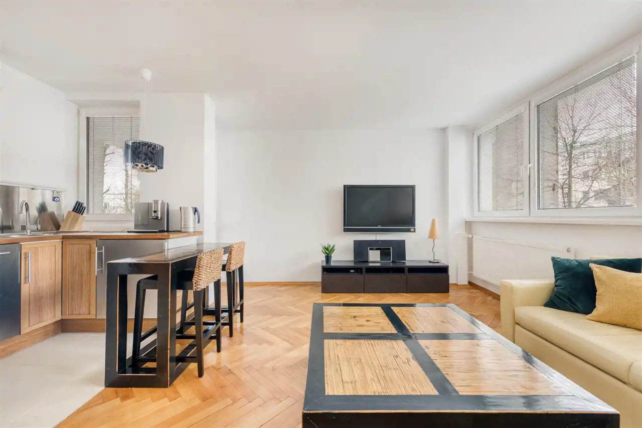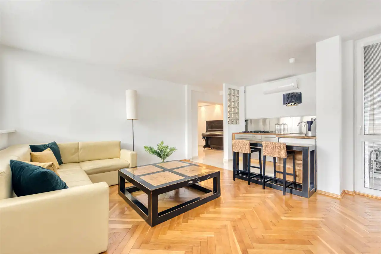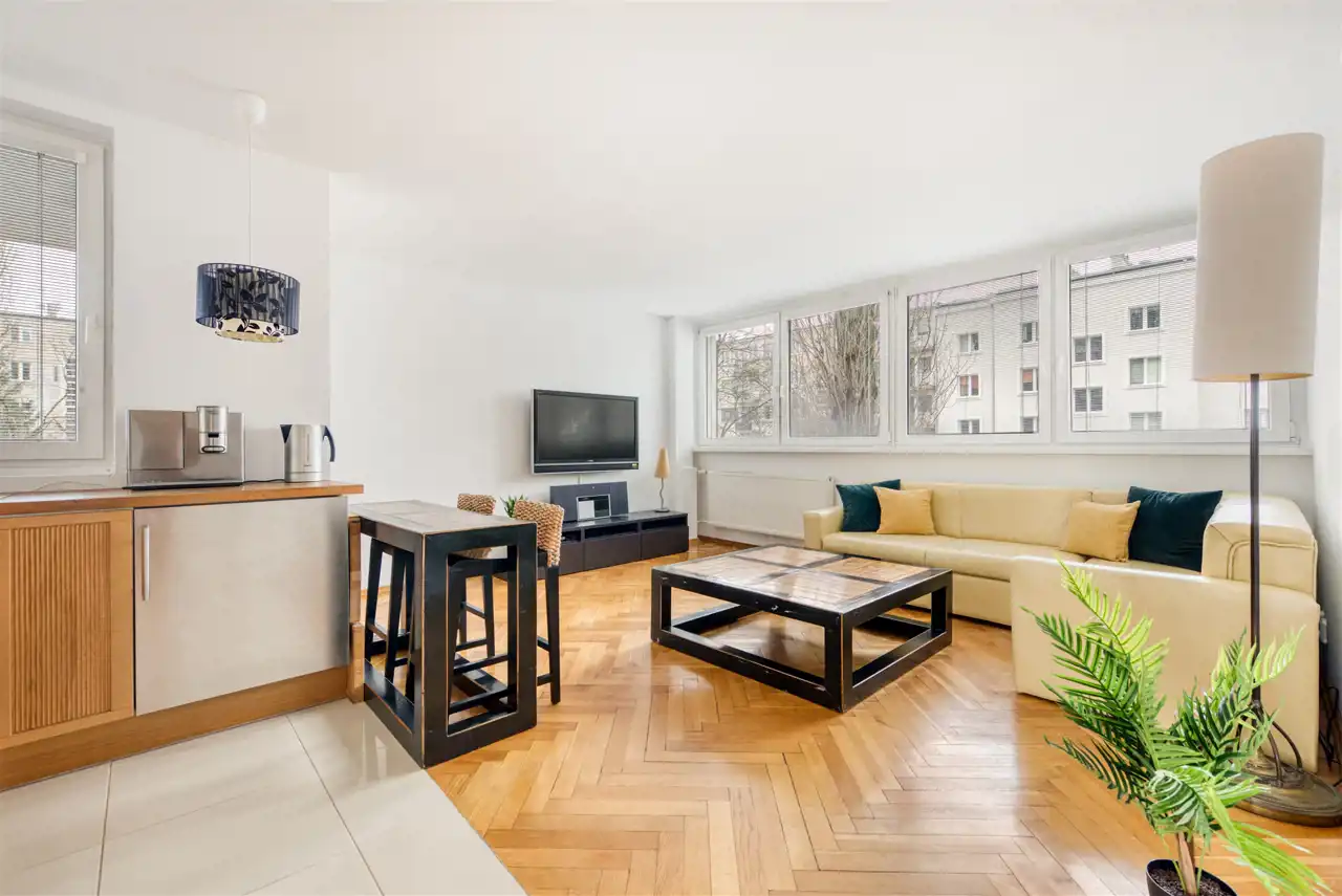 Przytulna aranżacja wnętrz, funkcjonalny układ apartamentu oraz doskonała lokalizacja stanowią niewątpliwe atuty oferty.