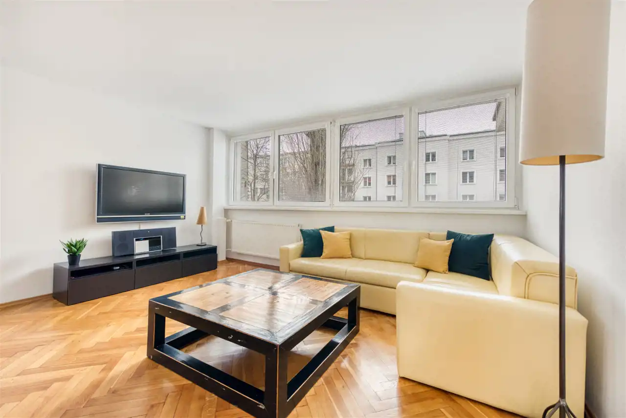 Mieszkanie jest w pełni umeblowane i wyposażone, dostępne od 1 października 2025.
