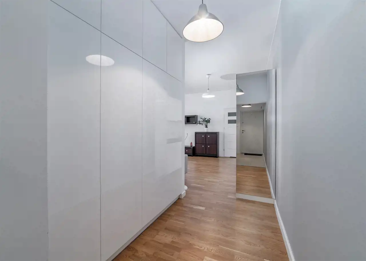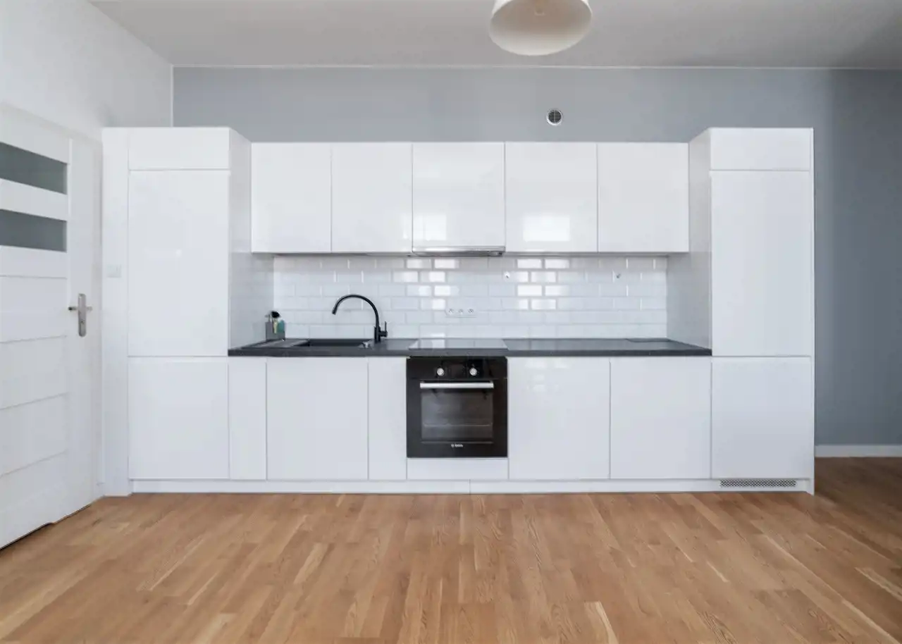 - aneks kuchenny wyposażony w płytę indukcyjną, okap, piekarnik, zmywarkę i lodówko-zamrażarkę;