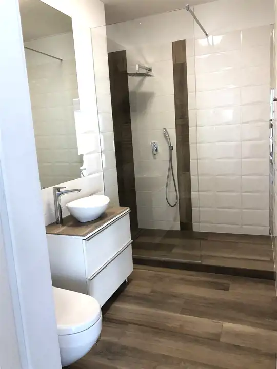 - ŁAZIENKA+WC: glazura, terakota, kabina prysznicowa, umywalka, szafka pod umywalką, sedes,