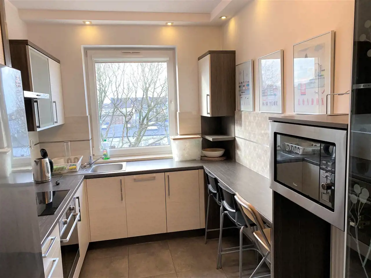 - KUCHNIA: kompletnie umeblowana i wyposażona, meble kuchenne w zabudowie, lodówka z zamrażarką, płyta elektryczna indukcyjna, pochłaniacz, piekarnik, mikrofala, wysokie krzesła barowe,