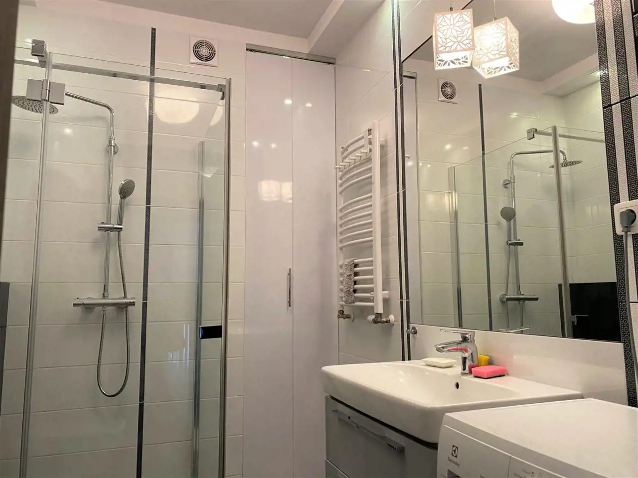 - ŁAZIENKA + WC: kabina prysznicowa, umywalka z lustrem i szafką, pralka, sedes,