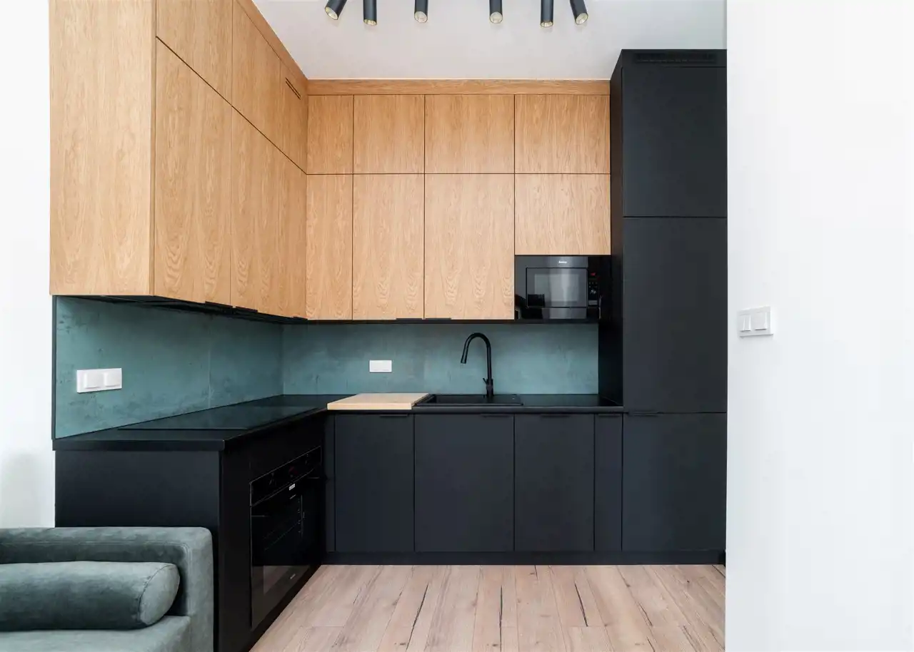 - kompletnie wyposażony aneks kuchenny ( okap, piekarnik, zmywarka, mikrofalówka, lodówko-zamrażarka);