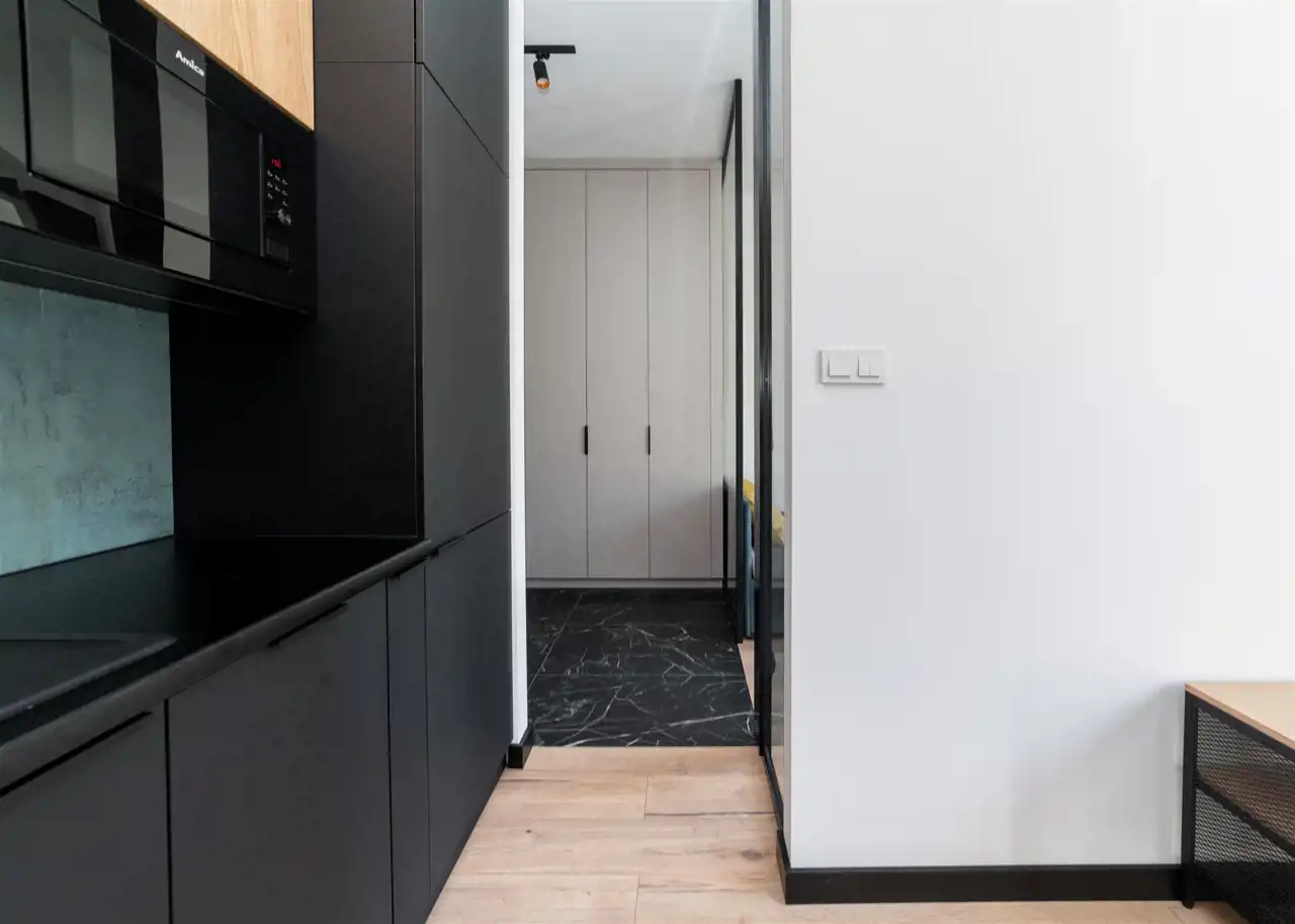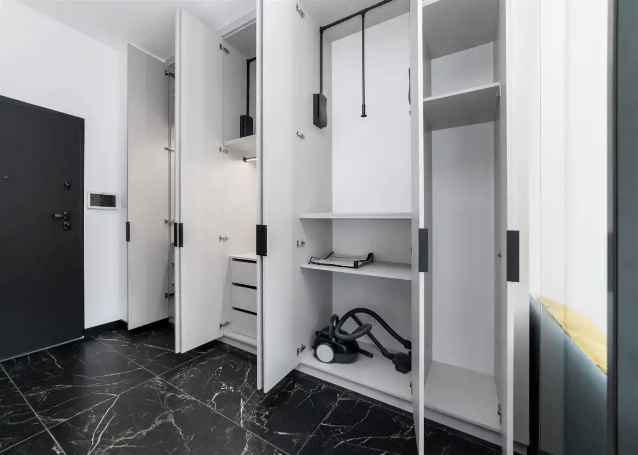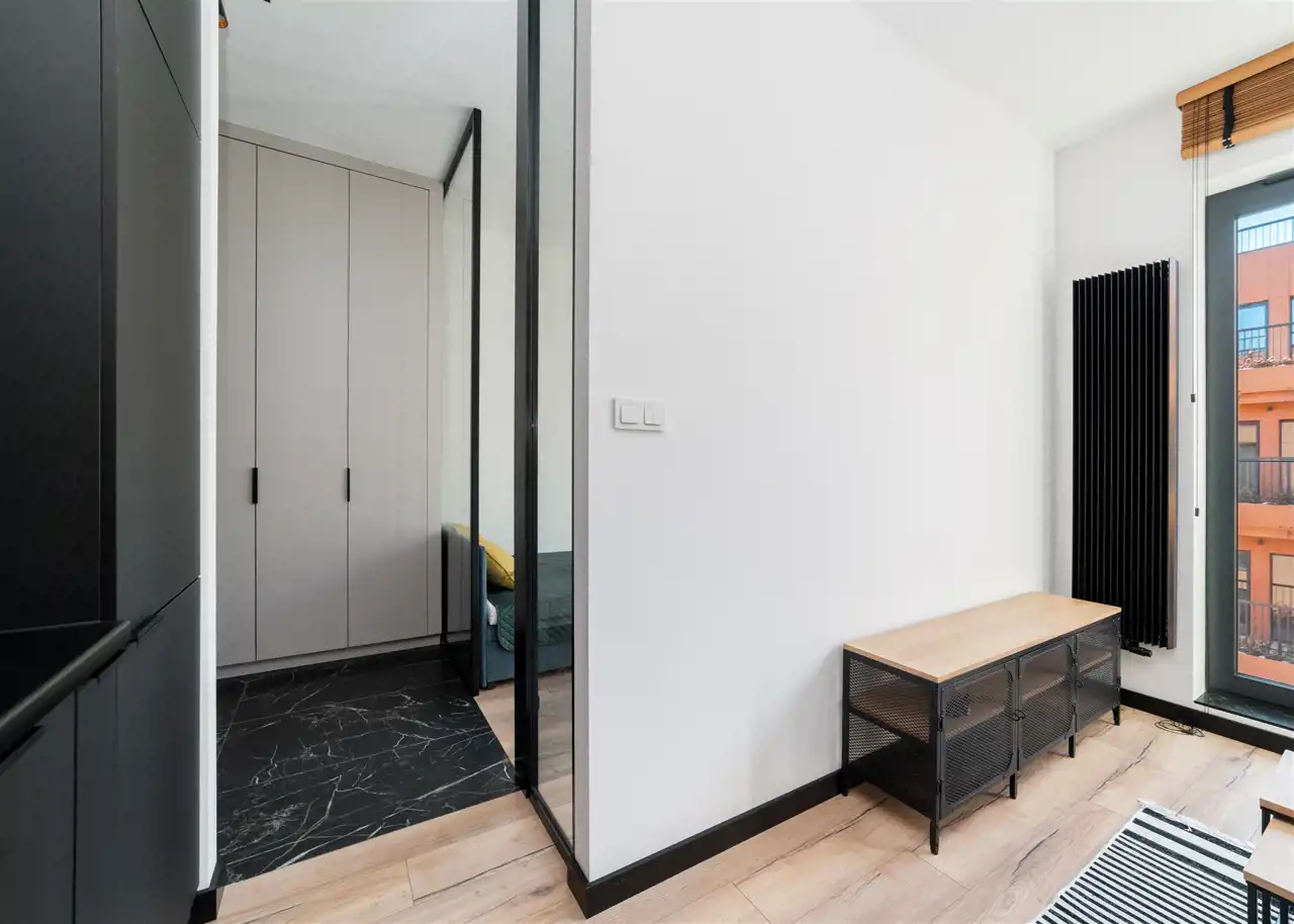 - przedpokój ze świetnie zaprojektowaną zabudowaną szafą.