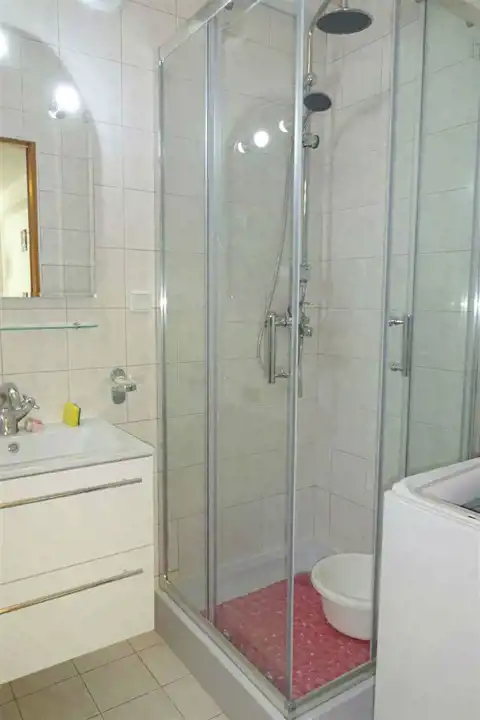 - ŁAZIENKA: razem z wc, jasna glazura, terakota, kabina prysznicowa, pralka automatyczna
