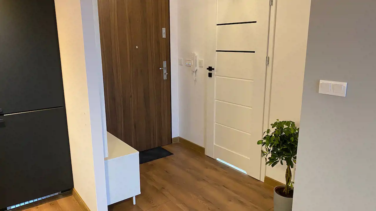 Włącznikiem przy drzwiach można uruchomić tzw. "funkcję hotelową", która pozwala wyłączyć prąd w całym mieszkaniu (poza lodówką), zamknąć zawory wody i ustawić ogrzewanie na tryb eco.