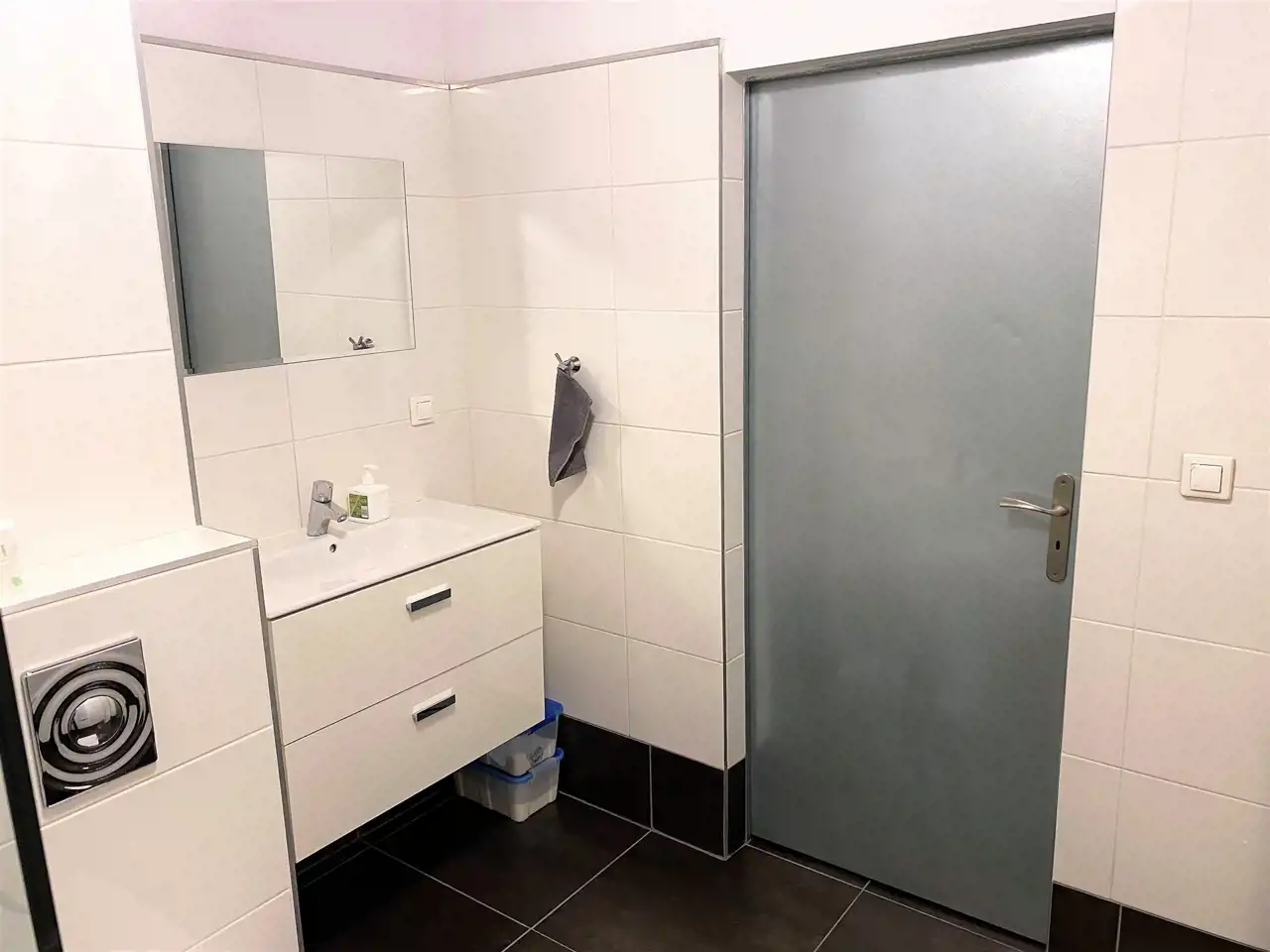 - ŁAZIENKA Z WC: kabina prysznicowa z baterią, umywalka z szafką i dużym lustrem, sedes podwieszany, szafka łazienkowa wolnostojąca,