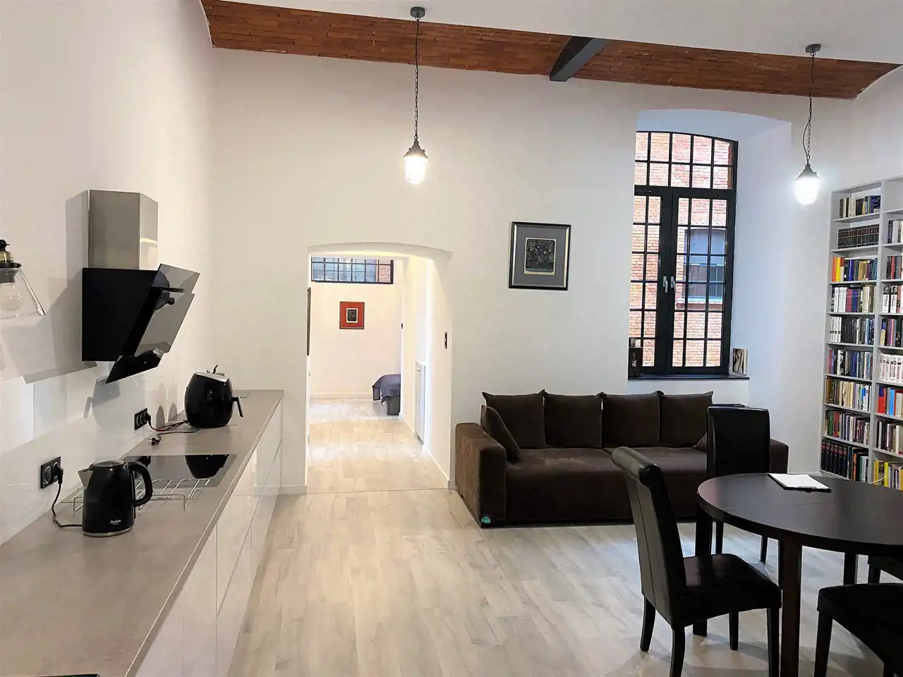Kompletnie umeblowany i wyposażony APARTAMENT - LOFT w unikalnej inwestycji "U Scheiblera", ogrodzony, strzeżony teren - całodobowa ochrona - portiernia przy wejściu do budynku,