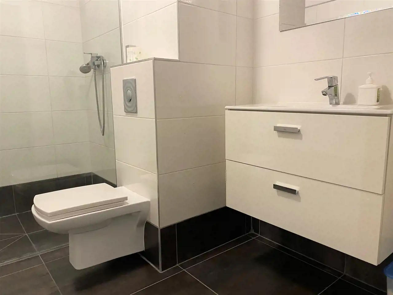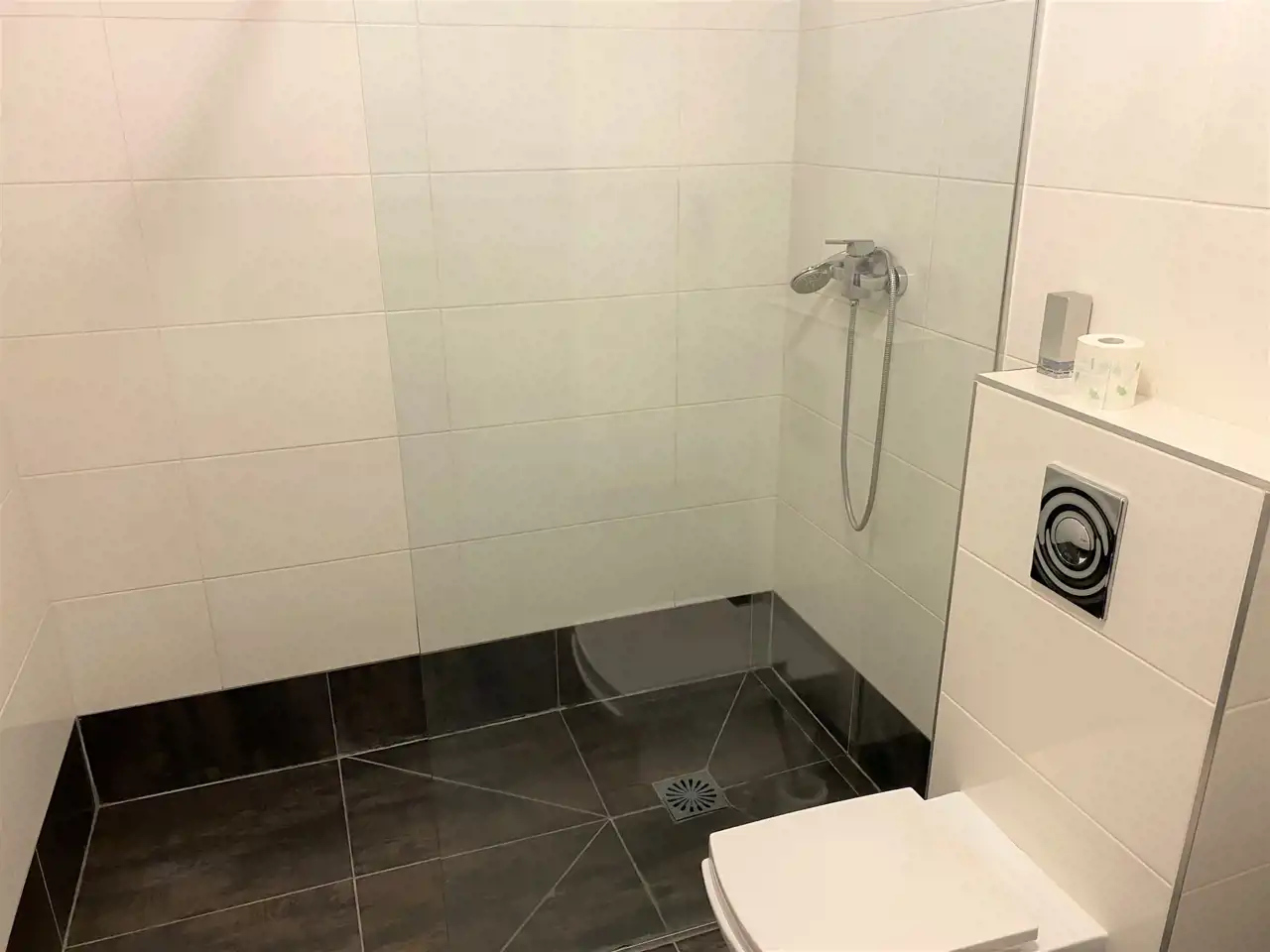 - ŁAZIENKA Z WC: kabina prysznicowa z baterią, umywalka z szafką i dużym lustrem, sedes podwieszany, szafka łazienkowa wolnostojąca,