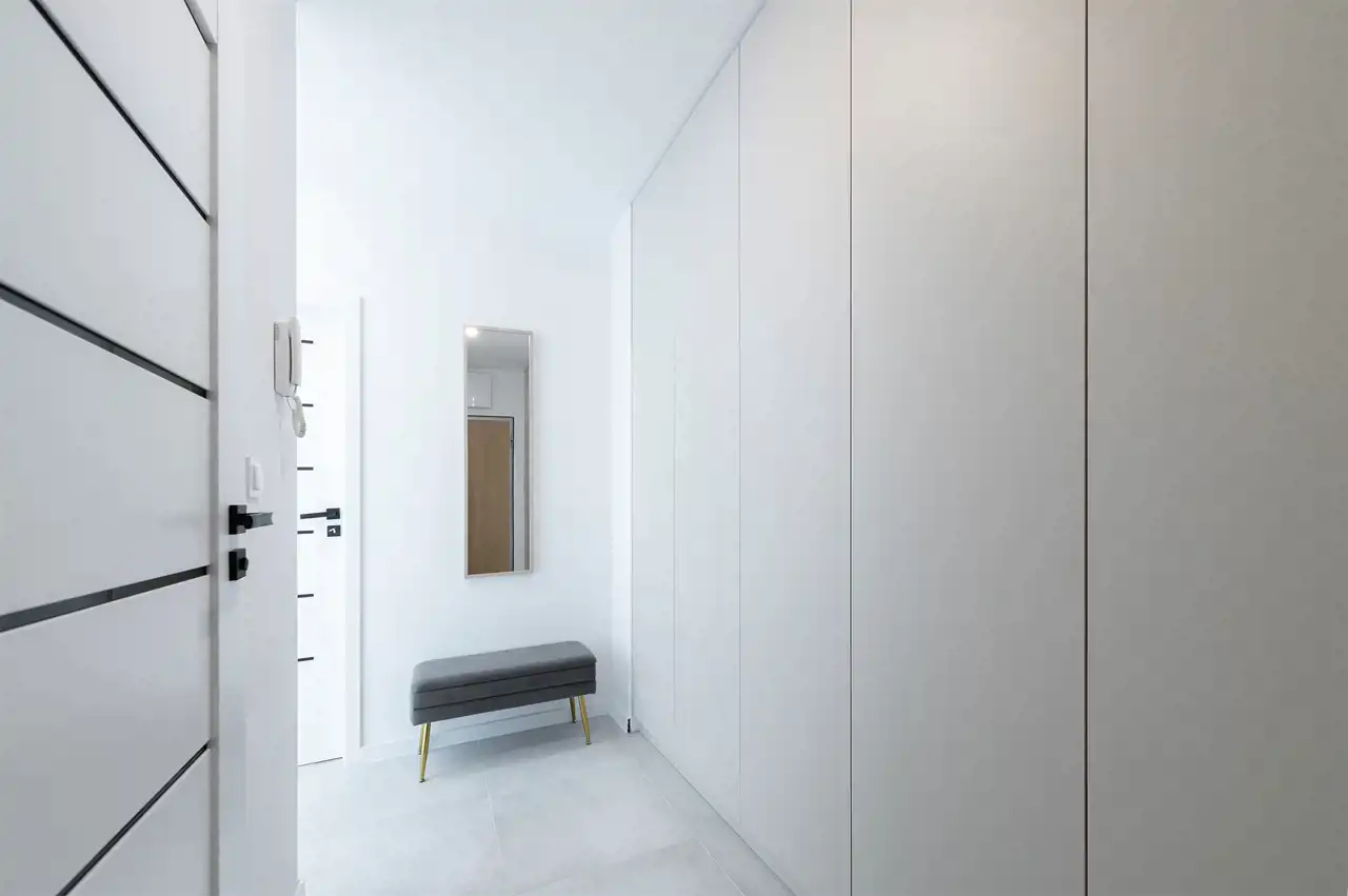 - przedpokój z zabudową szaf.