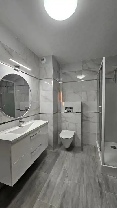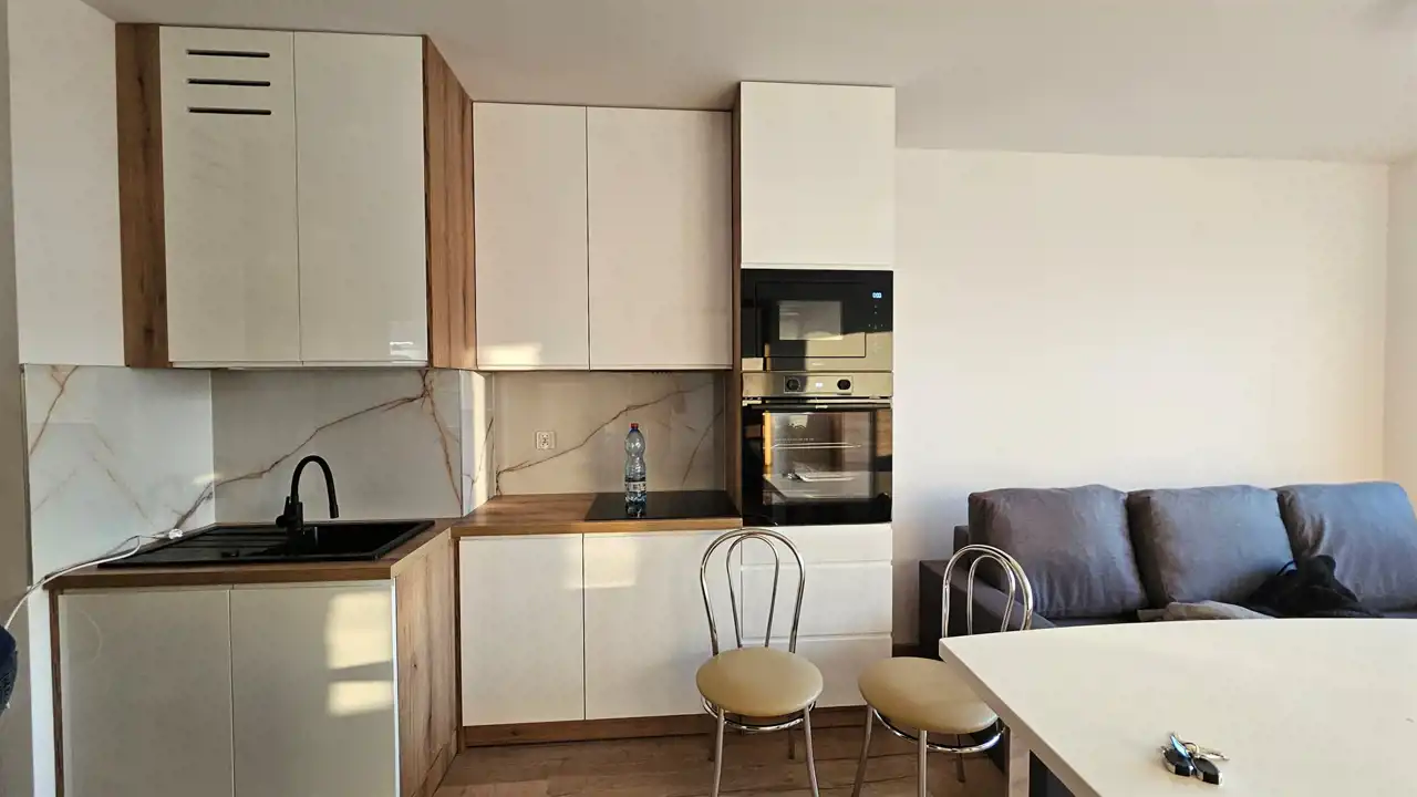 W pełni wyposażone - w salonie znajdziemy wygodną kanapę, szafkę RTV, komodę. Kuchnia wyposażona we wszystkie niezbędne sprzęty - lodówka, zamrażarka, zmywarka, piekarnik, płyta indukcyjna, mikrofalówka. W sypialni znajduje się podwójne łóżko z materacem, dużych rozmiarów szafa. W łazience prysznic, WC, umywalka, pralka. W przedpokoju szafa.