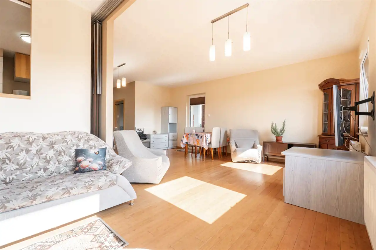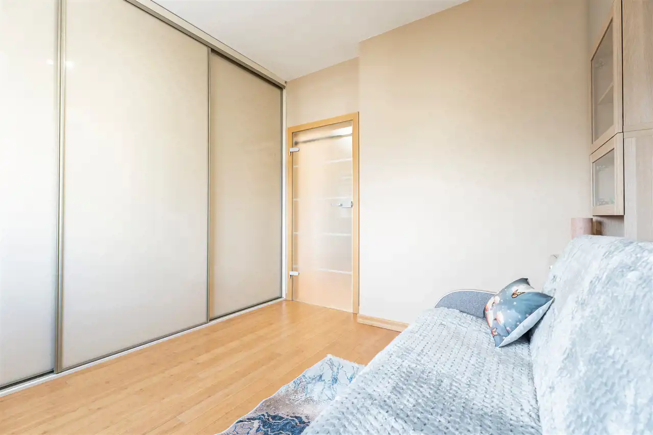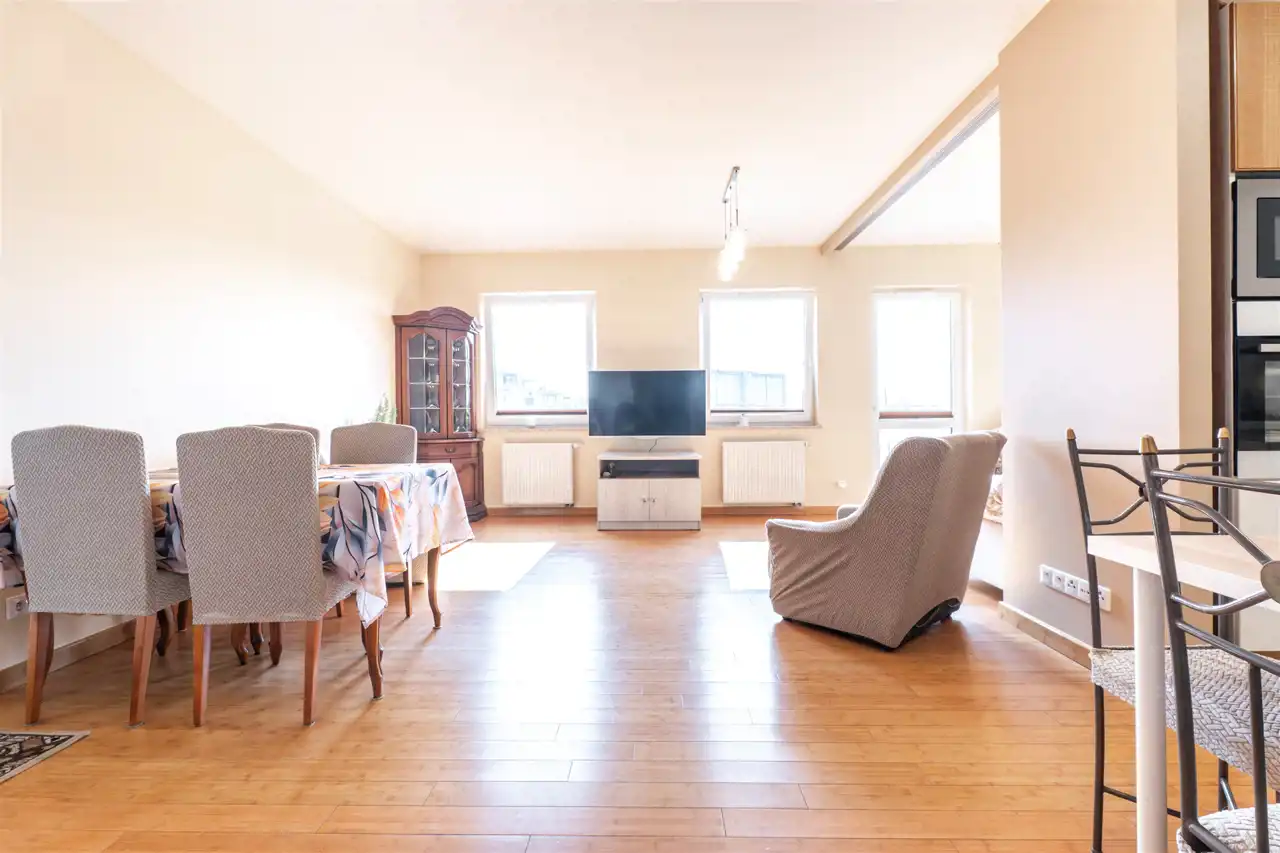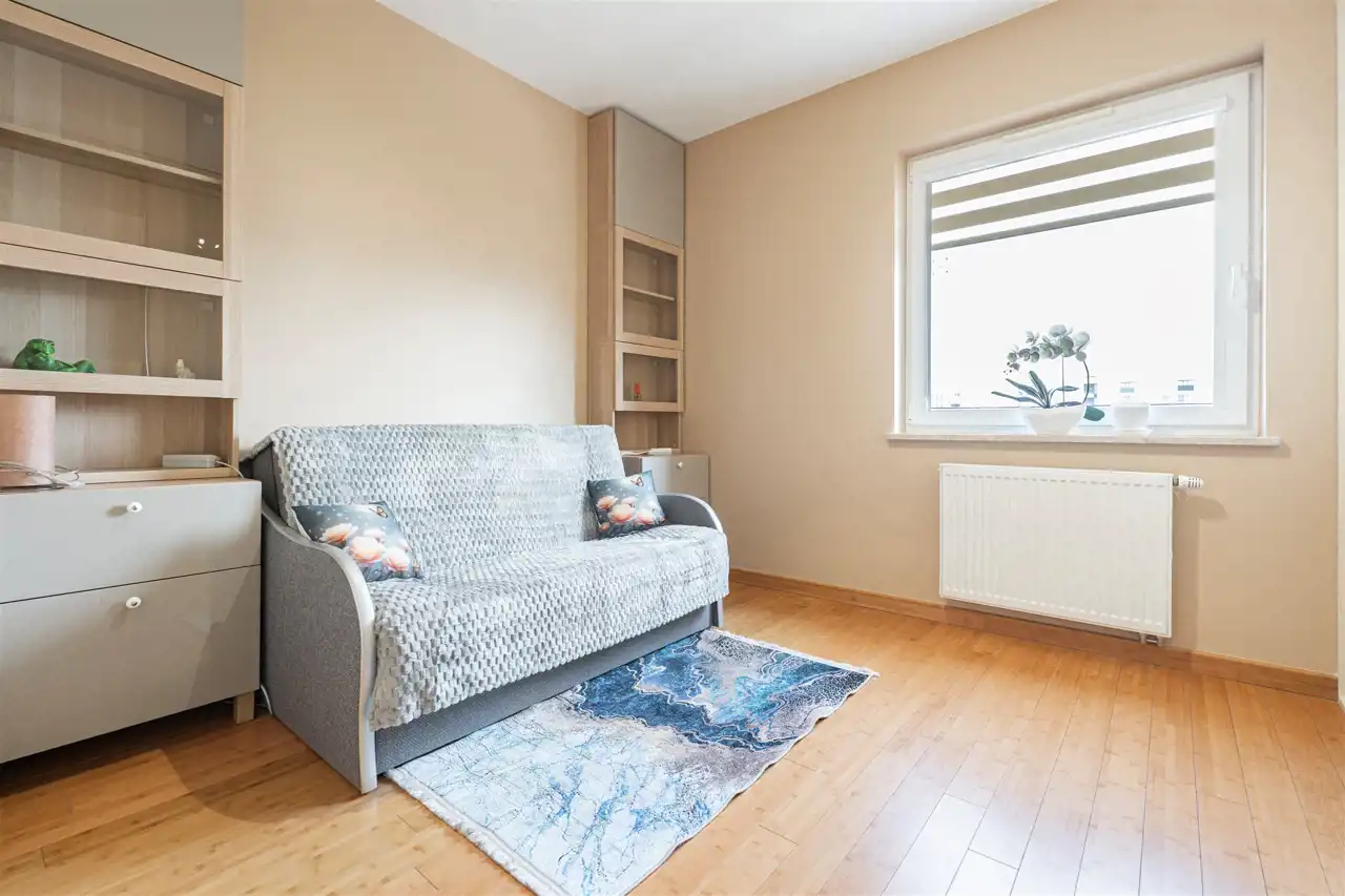 W pełni wyposażone. W salonie kanapa, stół z krzesłami, komoda, regał, stolik kawowy, szafka RTV oraz telewizor. Przy salonie aneks kuchenny, wyposażony w niezbędne sprzęty tj. piekarnik, lodówko-zamrażarkę, zmywarkę, płytę indukcyjna i okap oraz w funkcjonalne meble kuchenne i podstawowy komplet naczyń i sztućców. Sypialnia posiada rozkładaną sofę, dużą przestronną szafę w zabudowie oraz szafki nocne. W łazience prysznic, umywalka z lustrem oraz pralka. W przedpokoju dodatkowa szafa, na wyposażeniu również odkurzacz. Mieszkanie świeżo malowane, wykończone w ciepłym i przytulnym stylu. Drewniana podłoga (bambus).