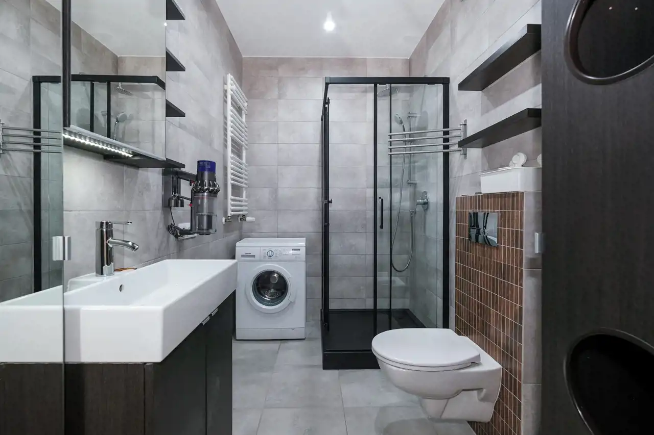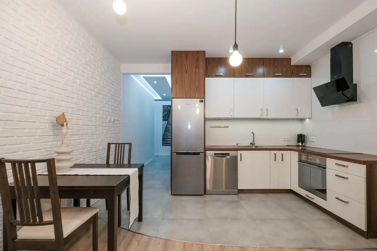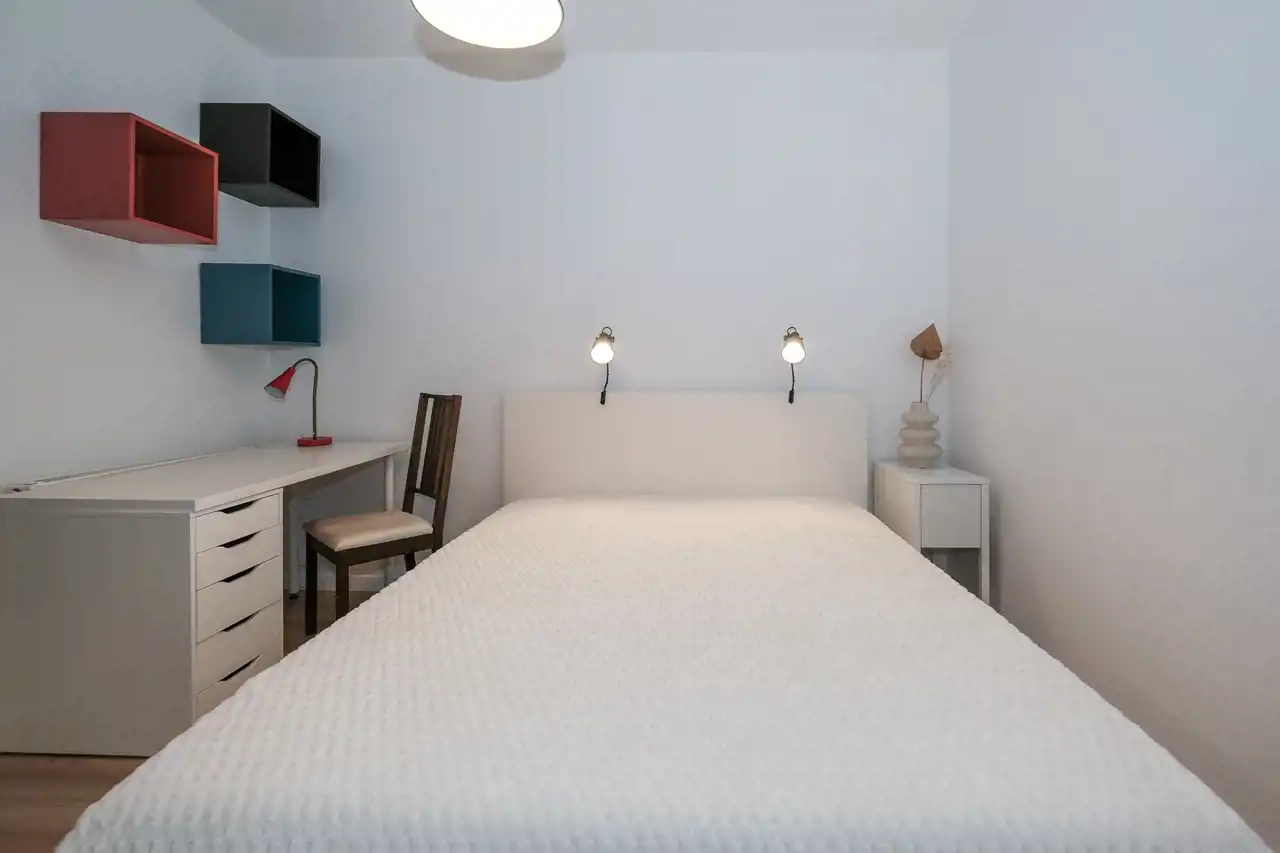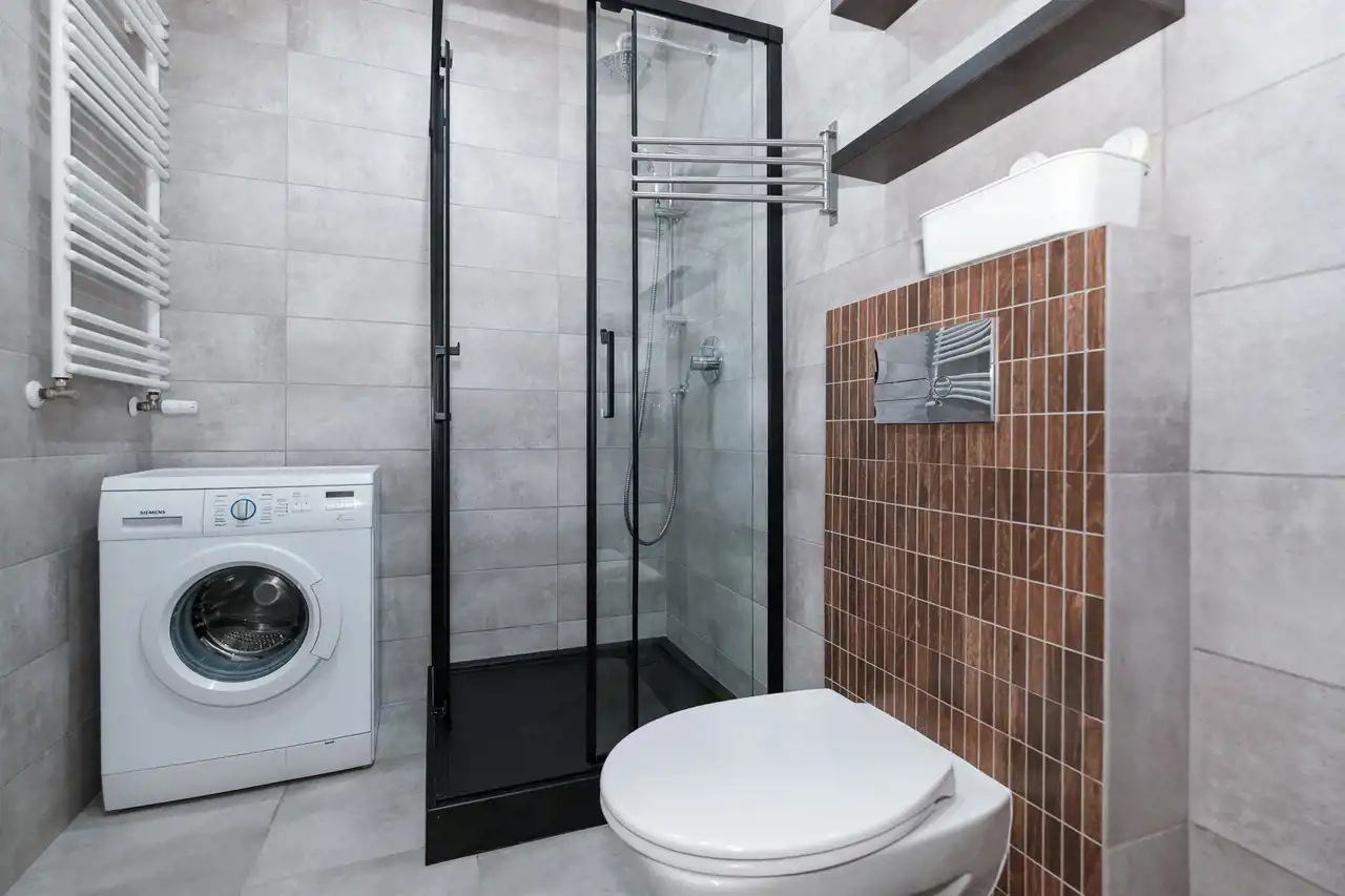 Prezentowane mieszkanie składa się z: salonu, wyposażonego w wygodną kanapę, połączonego z aneksem kuchennym (kuchnia w pełni wyposażona m.in. w zmywarkę, lodówkę, płytę indukcyjną, piekarnik), sypialni z podwójnym łóżkiem i pojemną szafą. Dodatkowo salon posiada wyjście na balkon z widokiem na miasto.