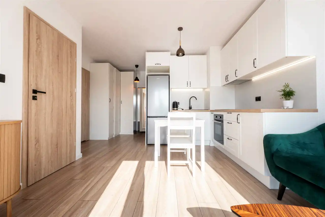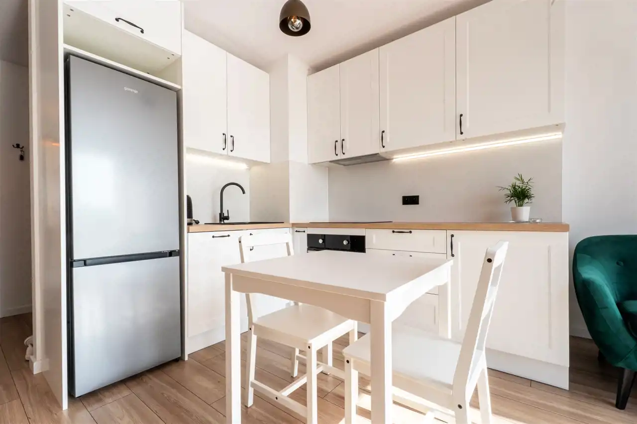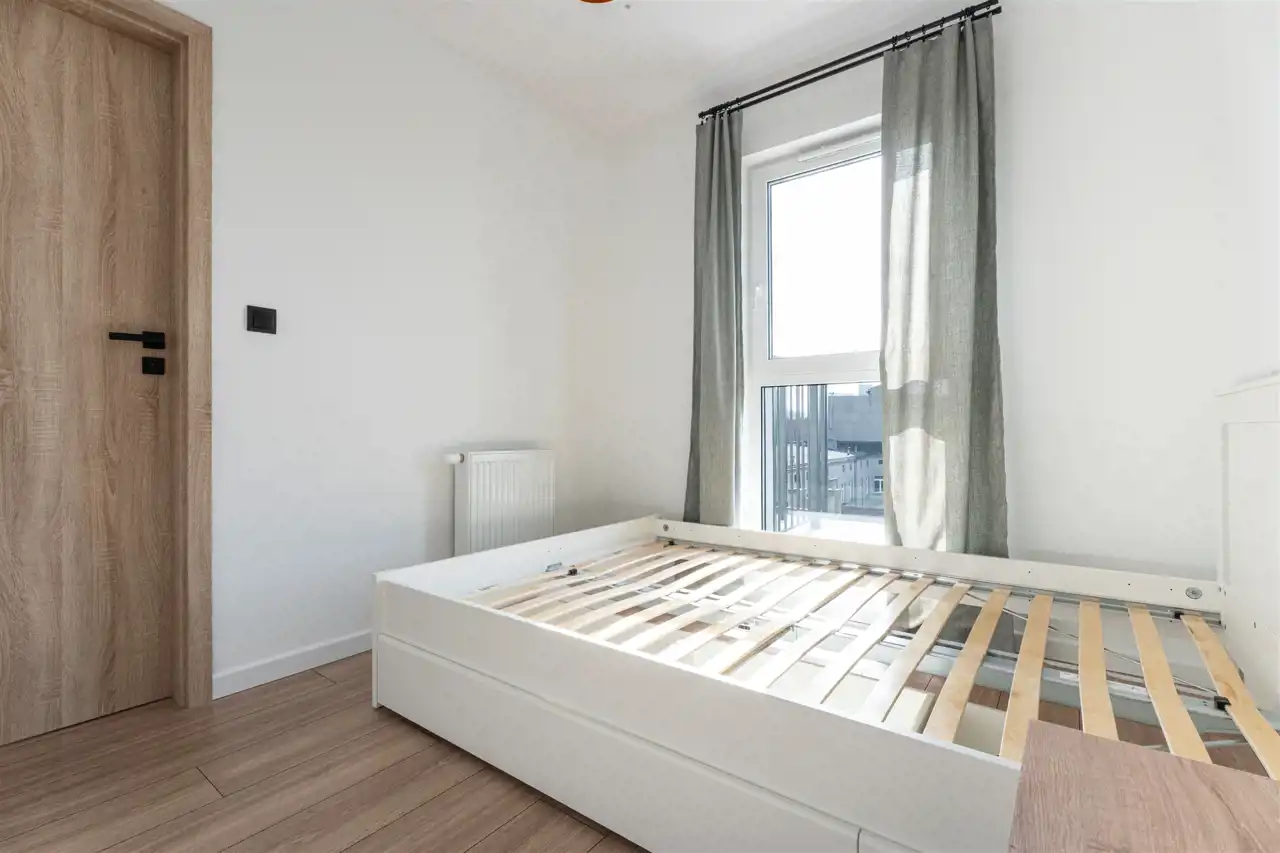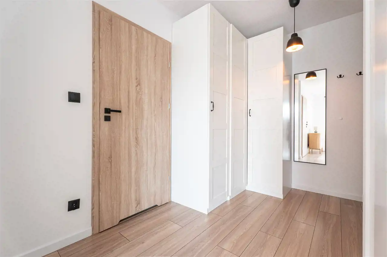 W pełni wyposażone - w salonie znajdziemy wygodną kanapę, szafkę RTV, stół z krzesłami. Kuchnia posiada wszystkie niezbędne sprzęty m.in. lodówkę, zmywarkę, piekarnik, płytę indukcyjną, okap. Wszystkie sprzęty nowe, na gwarancji. W sypialni znajdziemy podwójne łóżko i szafki noce. Łazienka została wyposażona w prysznic, umywalkę, toaletę oraz pralkę. W przedpokoju znalazła miejsce pojemna szafa. Mieszkanie posiada technologię smart home.