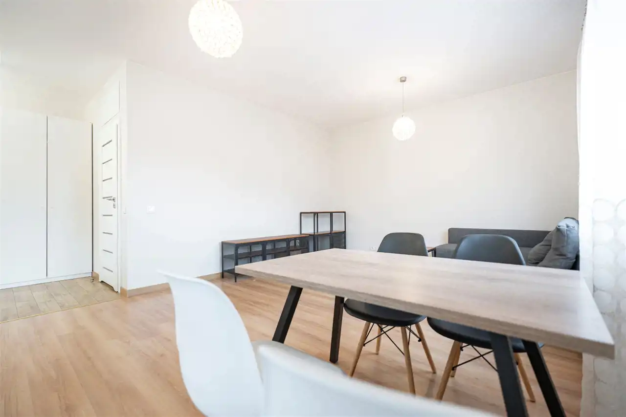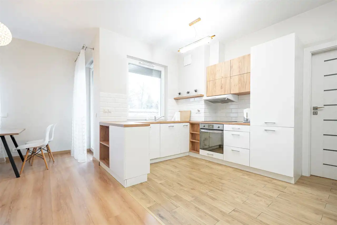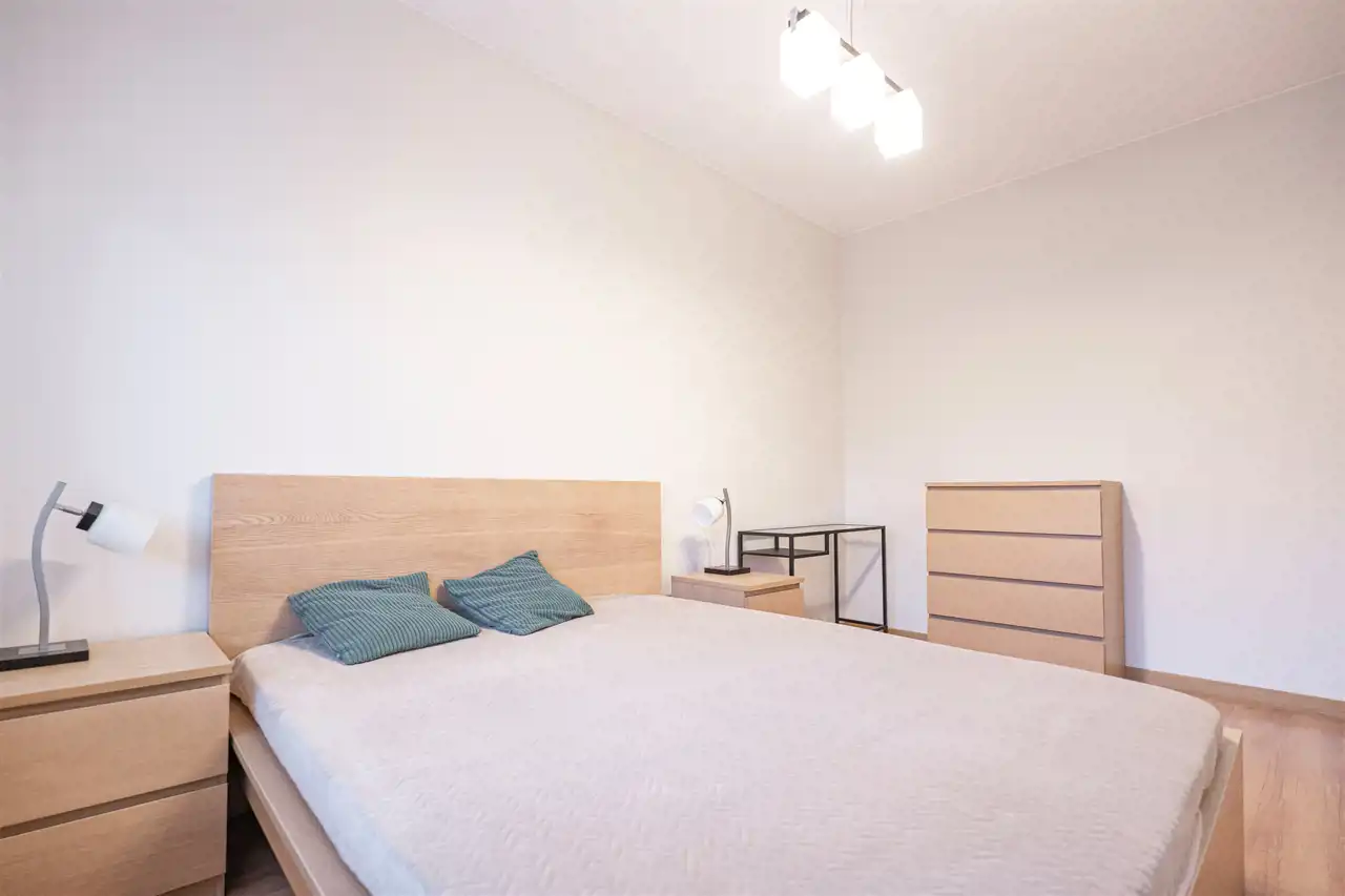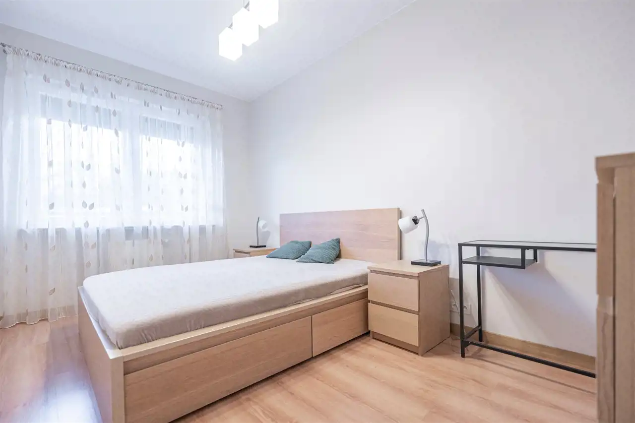W pełni umeblowane, gotowe do zamieszkanie. W salonie znajduje się wygodna rozkładana kanapa, regał, szafka RTV, TV oraz stół z krzesłami. Kuchnia została wyposażona we wszystkie niezbędne sprzęty - lodówka z zamrażarką, piekarnik, płyta indukcyjna, okap, zmywarka, a także komplet sztućców i naczyń. Sypialnia została wyposażona w podwójne łóżko z materacem, szafki nocne oraz komodę. Łazienka z prysznicem, umywalką oraz pralką. Dodatkowo mieszkanie balkon z ekspozycją zachodnią.