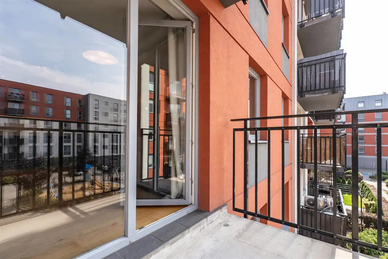 Nowoczesne 2-pokojowe mieszkanie z miejscem parkingowym i balkonem na zamkniętym osiedlu.