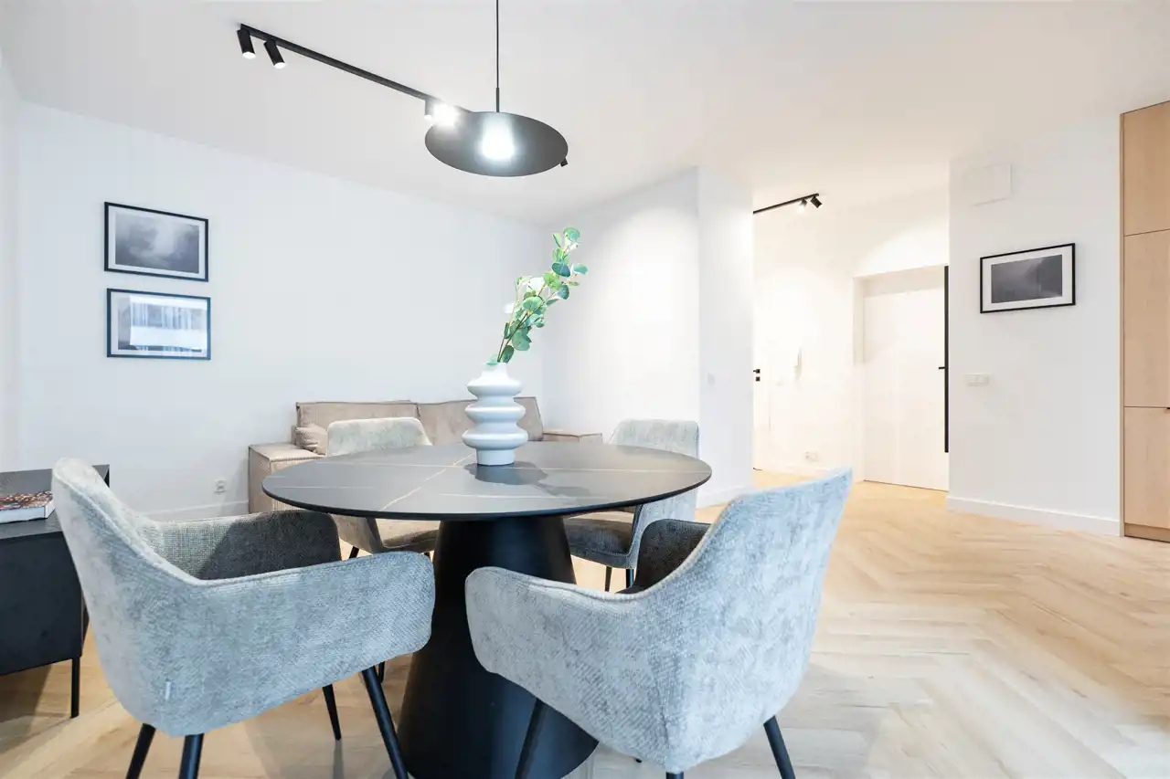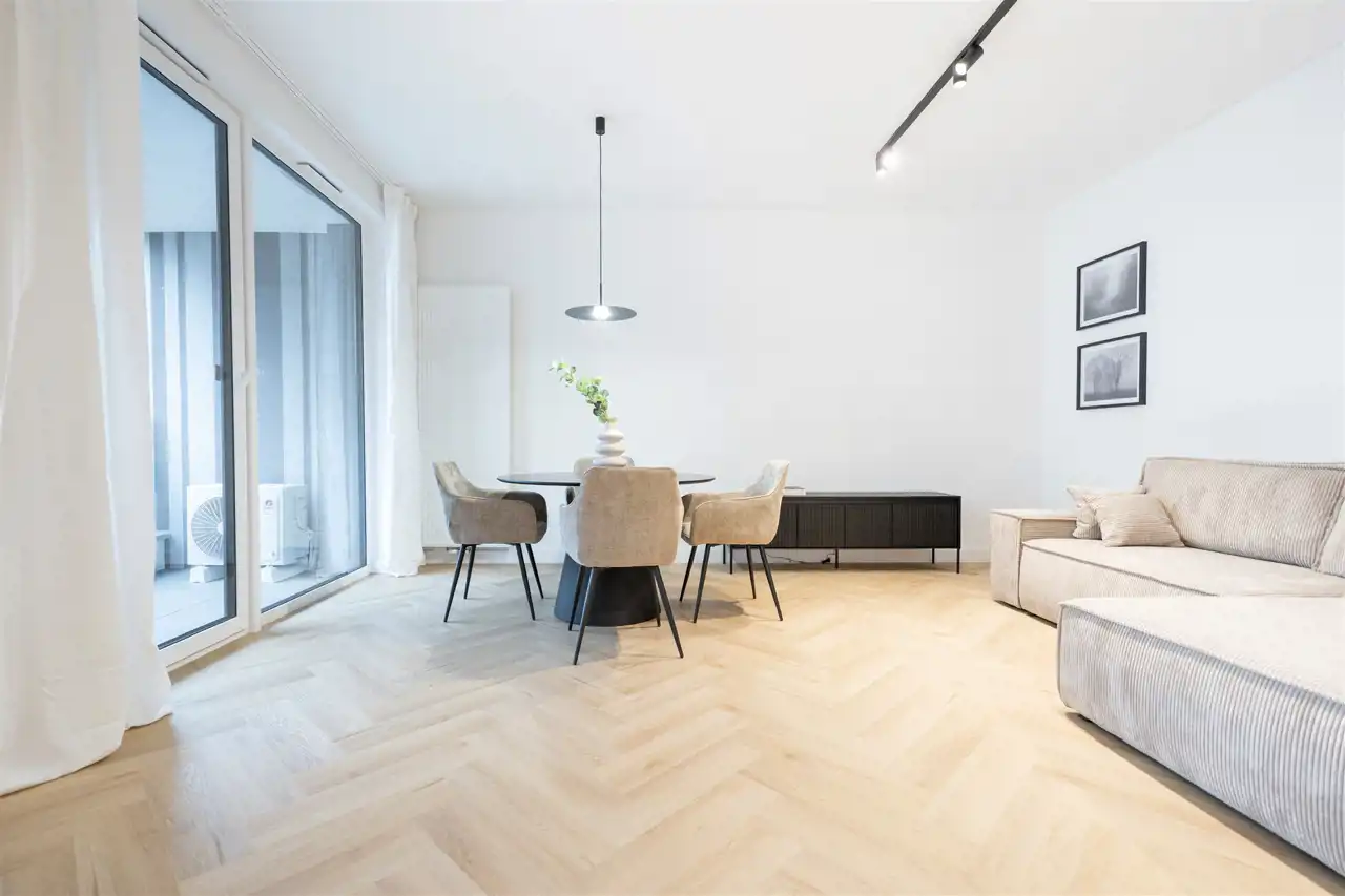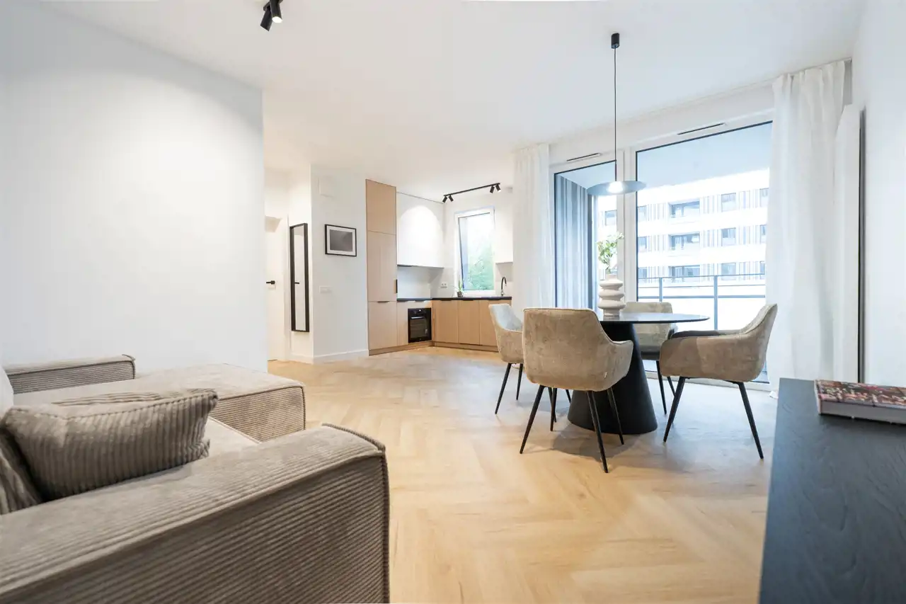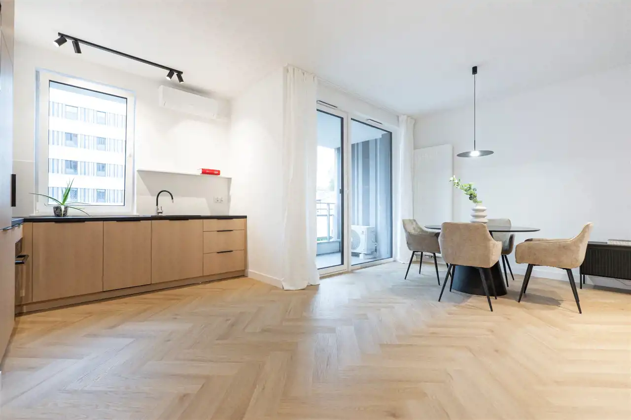 Do wynajęcia przestronny apartament o pow. ok. 50 m2, położony na pierwszym piętrze NOWEGO budynku z 2025 r. do pierwszego zamieszkania. Wszystkie sprzęty oraz wyposażenie nowe. Mieszkanie klimatyzowane.