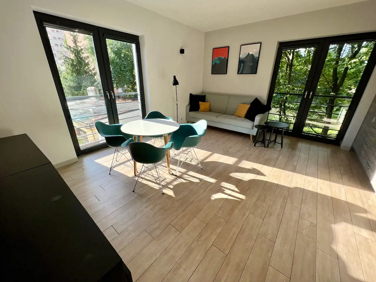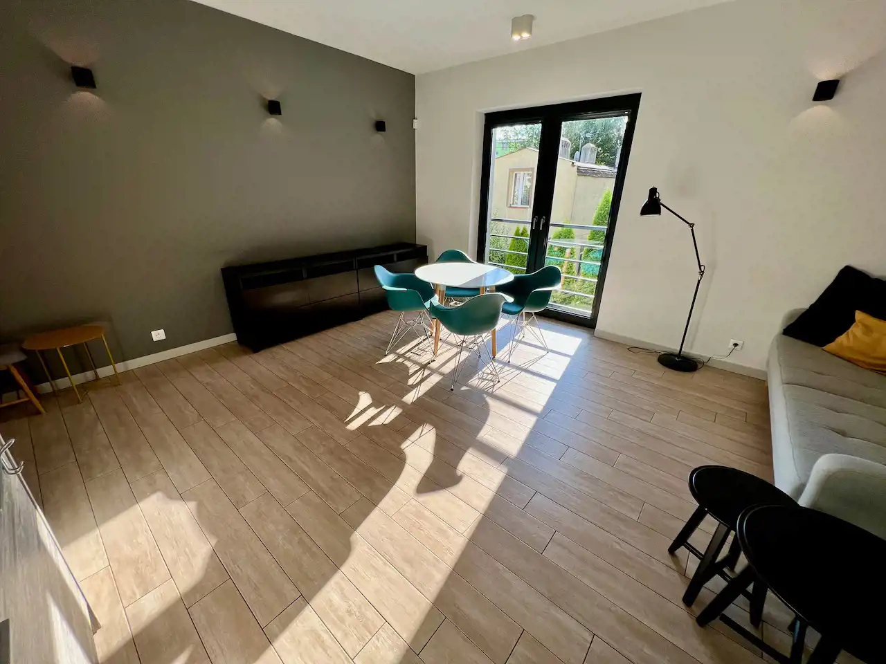 Nowoczesne i przestronne mieszkanie z miejscem parkingowym na zamkniętej posesji. Budynek ogrodzony z bramą wjazdową. Indywidualny alarm.
