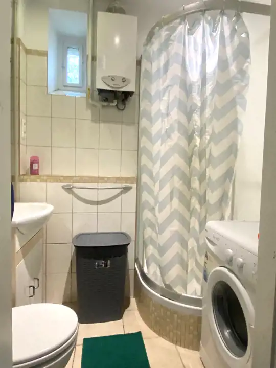 - łazienka z kabiną prysznicową, umywalka, wc, bojler gazowy, pralka
