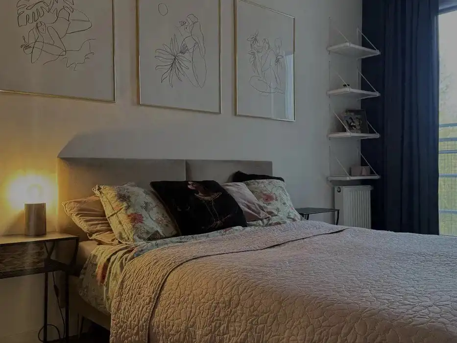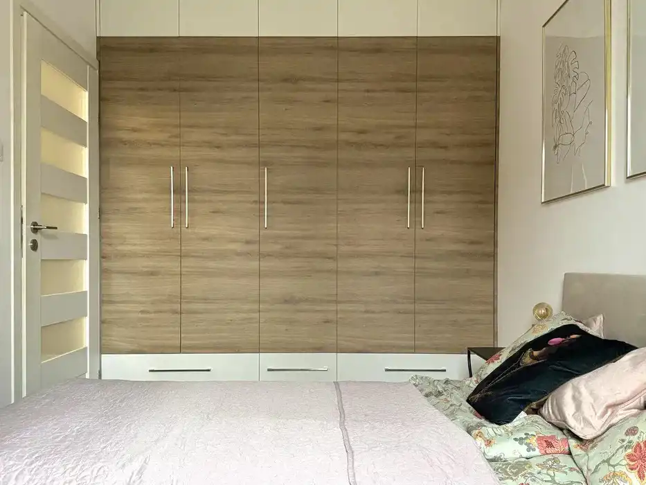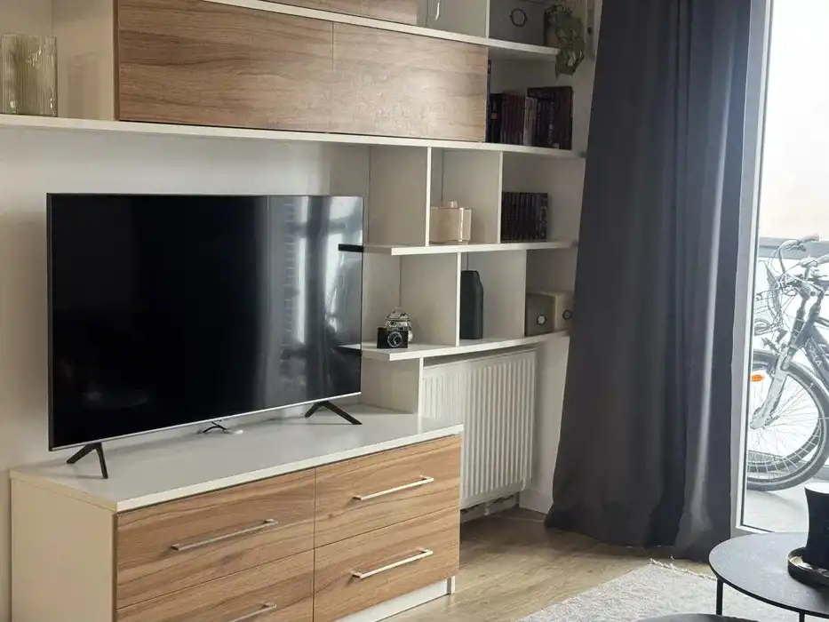 Przestronny salon posiada sofę, szafkę RTV, TV, stół z krzesłami. Salon połączony z aneksem kuchennym, wyposażonym we wszystkie niezbędne sprzęty: lodówka z zamrażarką, piekarnik, kuchenka mikrofalowa, płyta indukcyjna, okap, zmywarka oraz wyposażenie kuchenne. Wszystkie sprzęty oraz cała zabudowa w bardzo dobrym stanie, niezużyte. Sypialnia wyposażona w łóżko dwuosobowe, stolik nocny oraz pojemną szafę. Łazienka wyposażona w duży prysznic, WC oraz pralkę, dodatkowo funkcjonalne szafki.