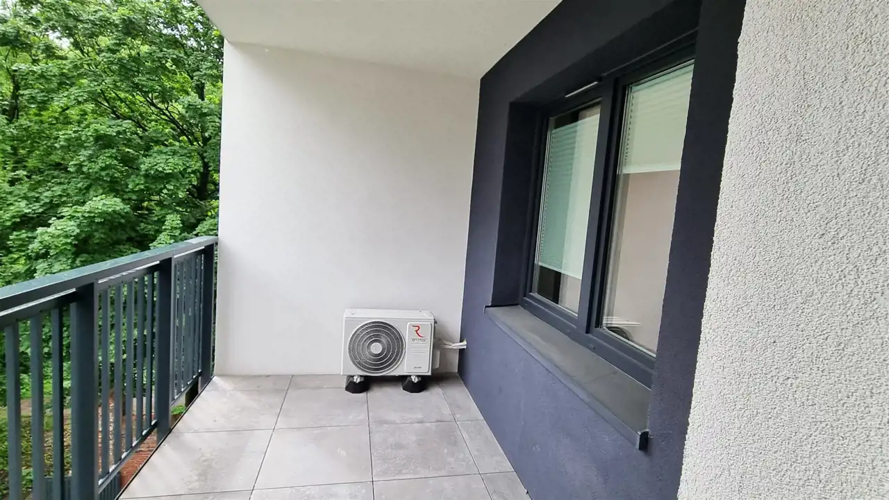 Wyjście na duży BALKON LOGGIA z widokiem na zieleń