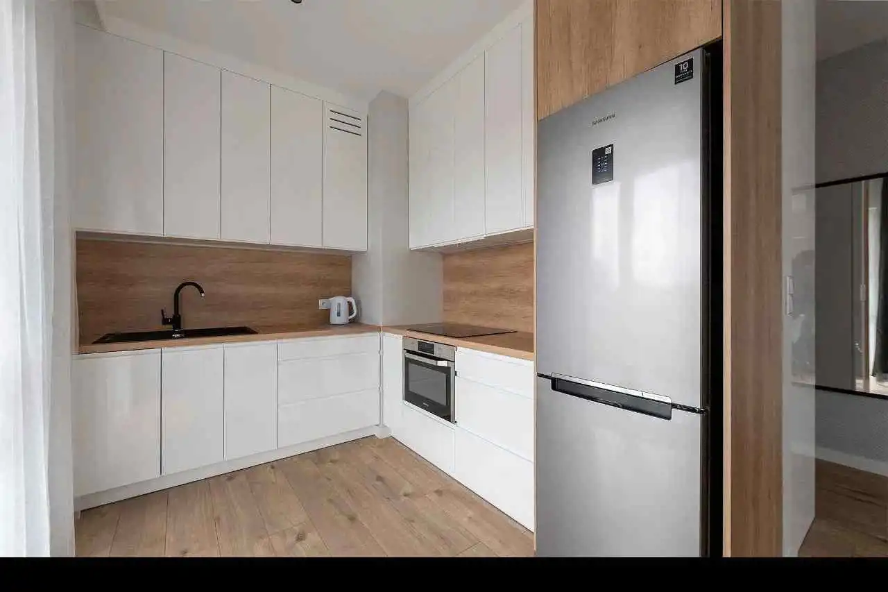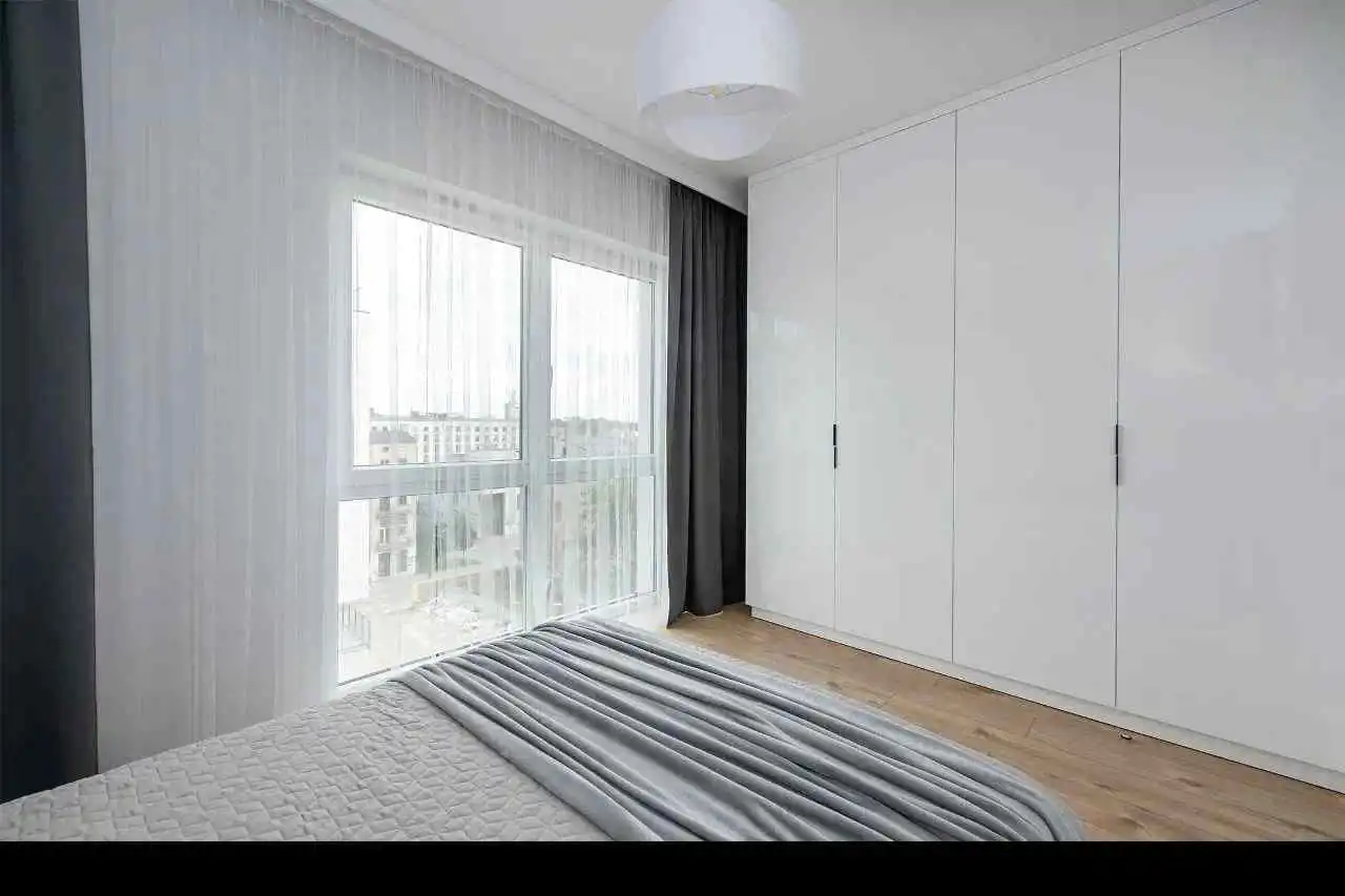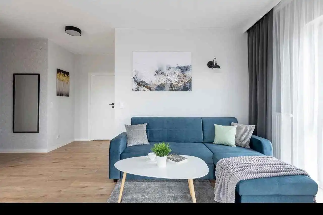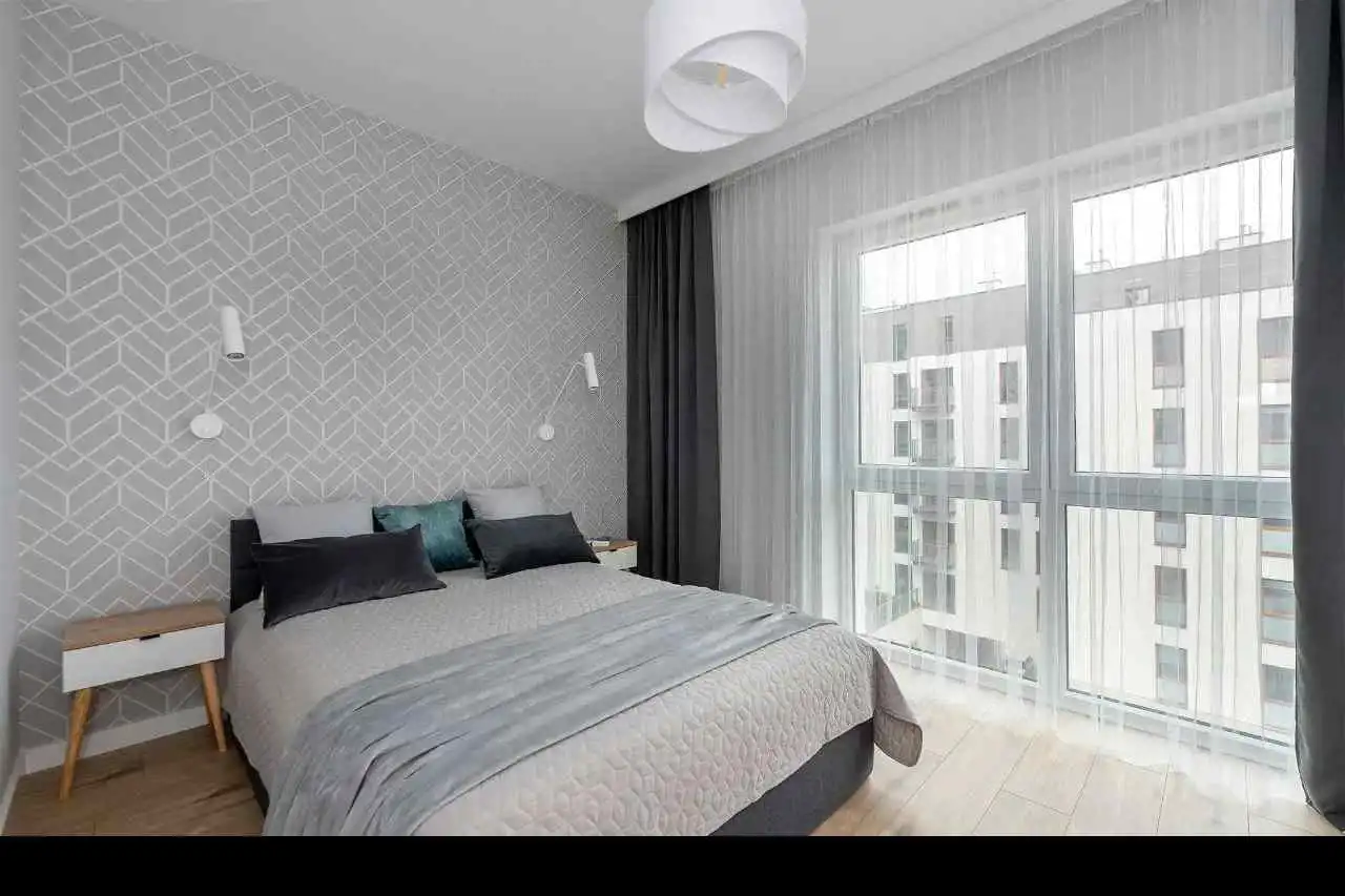 Apartament jest w pełni wyposażony. Urządzony w nowoczesnym stylu. W salonie znajduje się wygodna kanapa, stolik kawowy, szafka RTV, telewizor, stół z krzesłami. Aneks kuchenny został wyposażony we wszystkie niezbędne sprzęty m.in. zlewozmywak z baterią, lodówko zamrażarka, piekarnik, mikrofalę, zmywarkę płytę indukcyjną. Sypialnia w pełni urządzona - duże, wygodne łóżko małżeńskie z materacem, pakowna szafa w zabudowie. W przedpokoju pakowna szafa, natomiast w łazience prysznic, toaleta, umywalka, szafki oraz pralka.