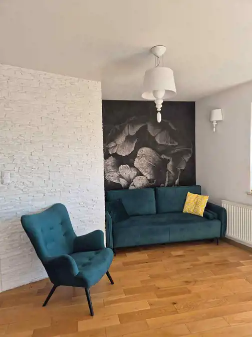 Przedstawia ofertę wynajmu apartamentu w Łodzi