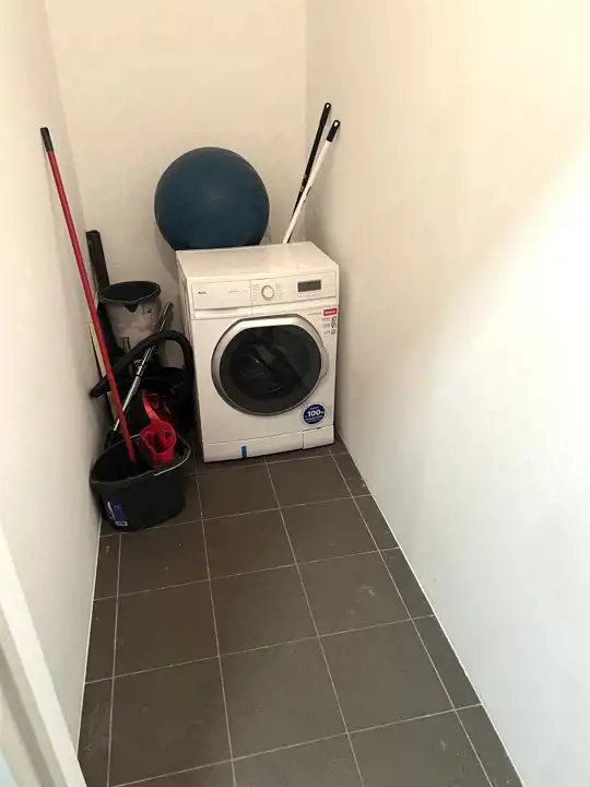 Obok mieszkania komórka lokatorska z pralką, (możliwe trzymanie w niej roweru, wózka),