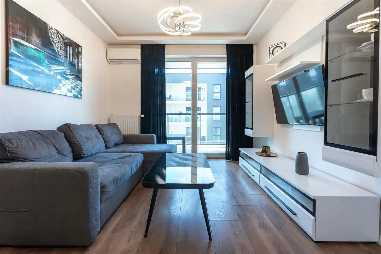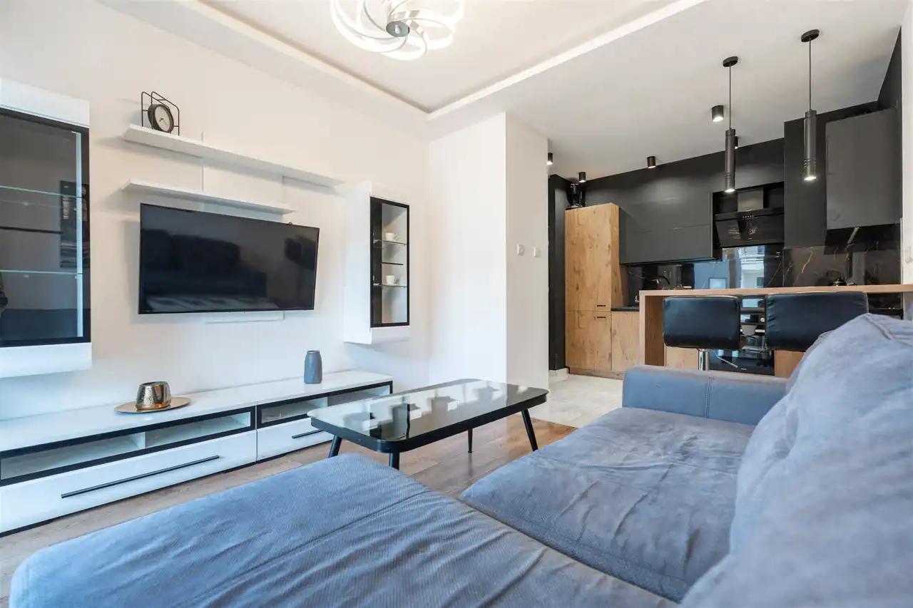 Mieszkanie w pełni umeblowane we wszystkie meble, sprzęty (wszystkie nowe i na gwarancji) oraz posiada pełne wyposażenie kuchenne, gotowe do wprowadzenia. Funkcjonalne szafy, meble i schowki, wszystkie sprzęty markowe.