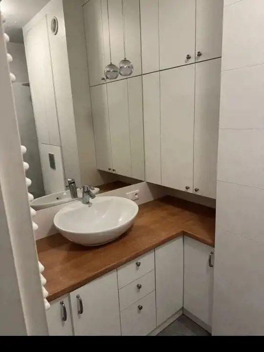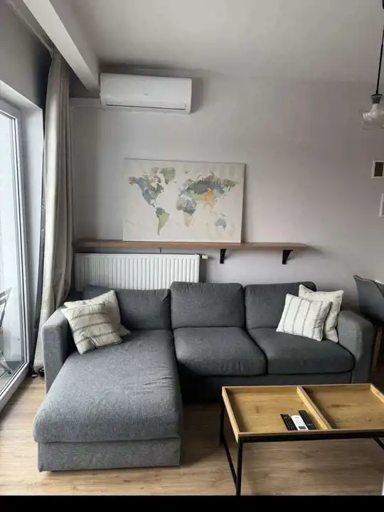 Mieszkanie w pełni umeblowane. W salonie znajdziemy wygodną kanapę, szafkę RTV, telewizor, stolik kawowy, regał oraz stół z krzesłami. W sypialni mieści się podwójne łóżko z materacem, pakowna szafa w zabudowie oraz biurko. Funkcjonalna kuchnia została wyposażona we wszystkie niezbędne sprzęty: lodówko-zamrażarkę, zmywarkę, płytę indukcyjną, piekarnik elektryczny, okap. Łazienka wraz z WC, w której znajdziemy prysznic typu walk-in, umywalkę oraz pralkę. W przedpokoju znajduje się szafa.